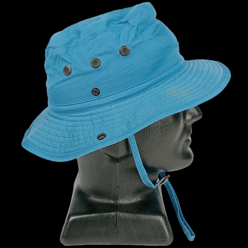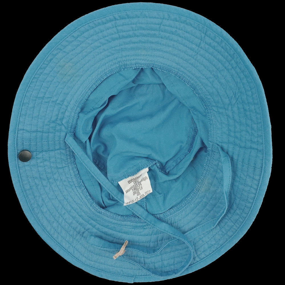 Here's a surprising one. What seems like a simple blue sun hat, is that and more. These are from Germany and that blue, that's UN Blue!
