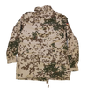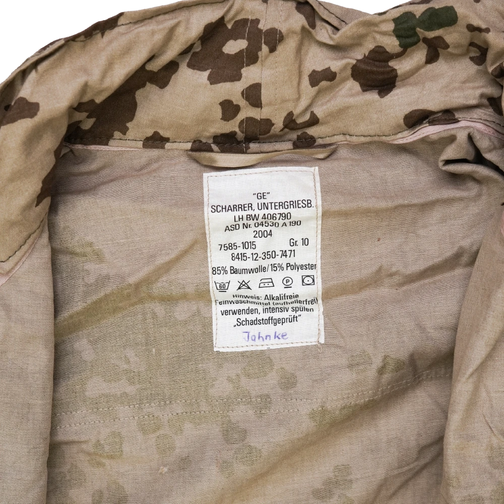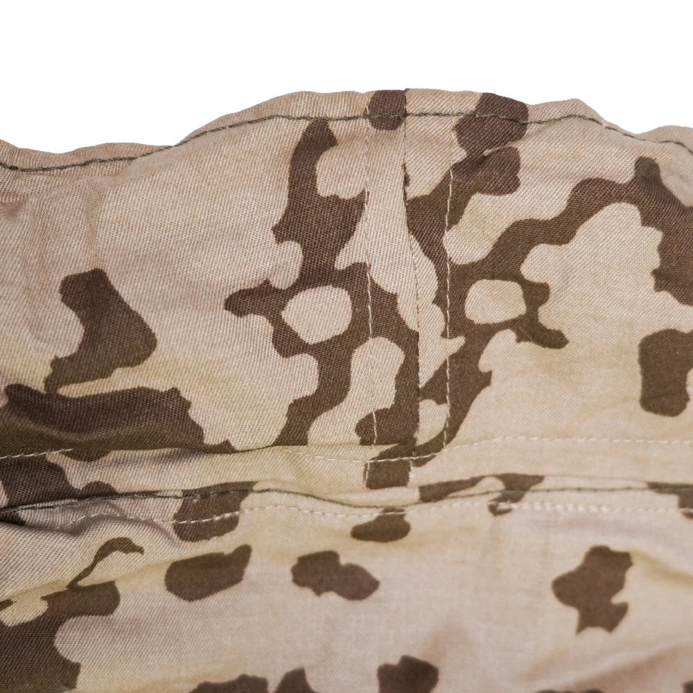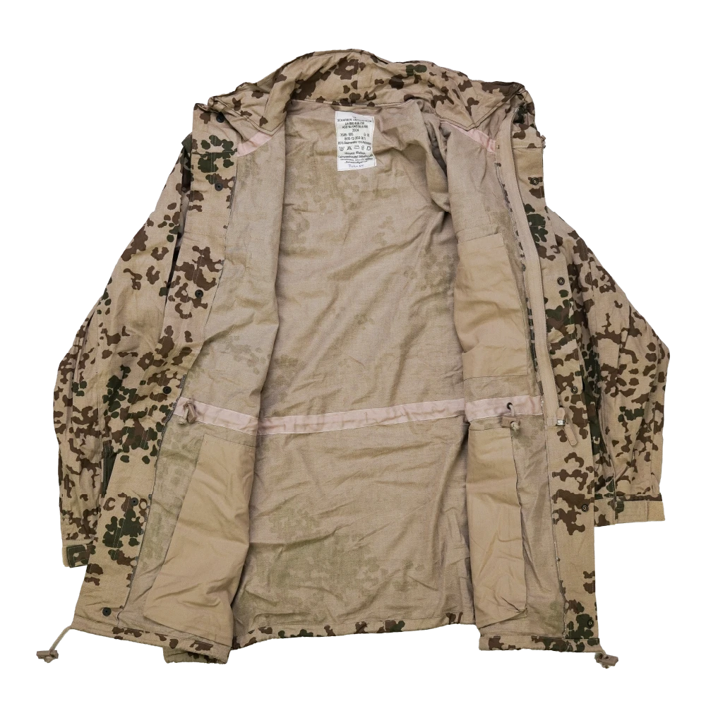 German surplus parka in Tropentarn camouflage. This example is a modified version, with the original hood removed and the area stitched down to form a padded collar.