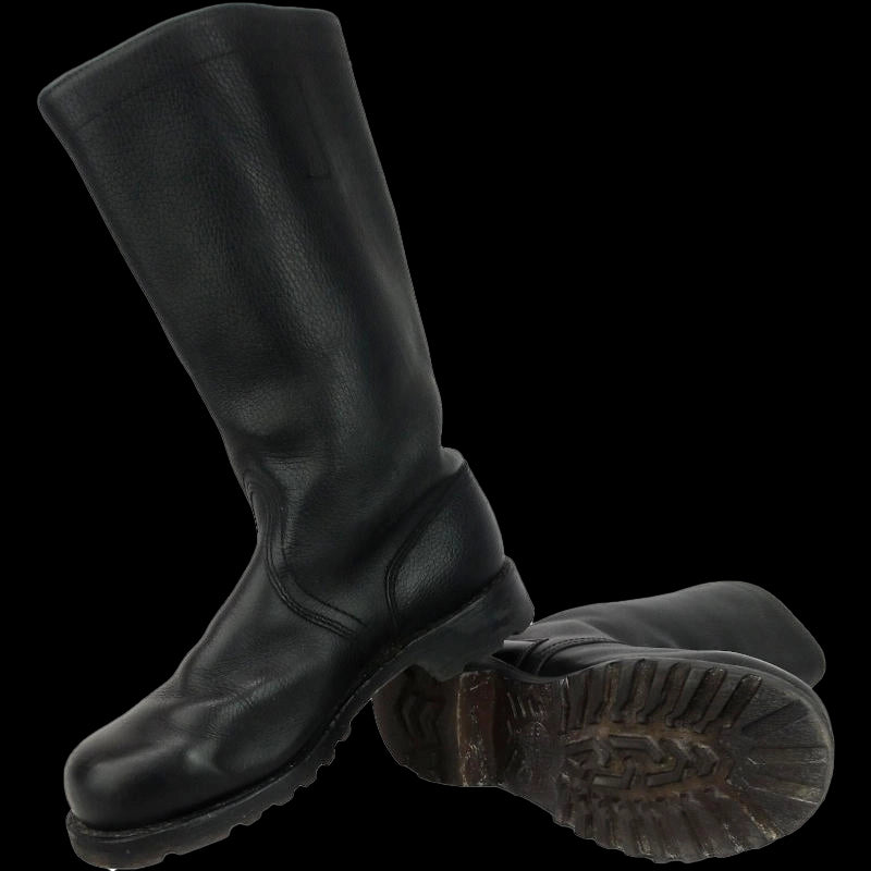 It's not everyday you come across a pair of German Navy jackboots. An iconic design, first originating from the German Army during WWI, known as a Marschstiefel (Marching Boot). These boots mostly stay true to the first iterations, the main difference being the soles are made from rubber rather than hobnailed leather. Sporting Bundesmarine soles, we believe these were mostly produced before the reunification of Germany.