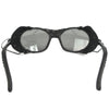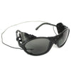 Keep your eyes fully protected with these glacier sunglasses. Removable leather covers prevent lateral light from effecting your vision, a common problem when light reflects off snow. Take off the covers to give these glasses a more casual appearance. The UV 400 lenses will protect your eyes from 99-100% of UVA and UVB radiation. They are also protected with an anti-fog/anti-scratch coating. The rubber ear pieces provide a comfortable fit while preventing the glasses from sliding off your head. Comes with a carrying pouch.