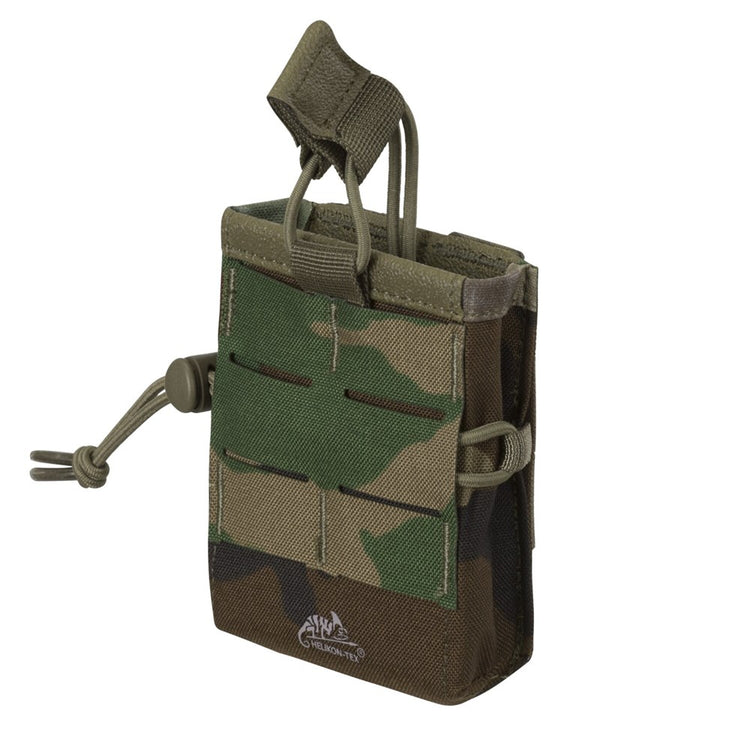 The Competition Rapid Carbine Pouch fits a single magazine (including for AR15 or AK47). It features an elastic band inside that keeps the magazine securely in place. The nylon pouch allows for safe and comfortable transport of the magazine during shooting, and its special reinforced design makes it easy to insert and remove the magazine. The magazine pouch can be attached to belts up to 50 mm wide and is also compatible with the MOLLE/PALS system. Additional pockets can also be attached to this functional pouch. Its strong fabric ensures durability.