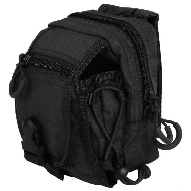 Easily keep your essential kit and every day carry gear tactically placed on your belt. With a military style design, this pouch features a MOLLE (Modular Lightweight Load-carrying Equipment) attachment which will fit over belts 10cm wide or less. The pouch is split into two main compartments with two pockets inside each compartment and a zipped pocket on the front flap.