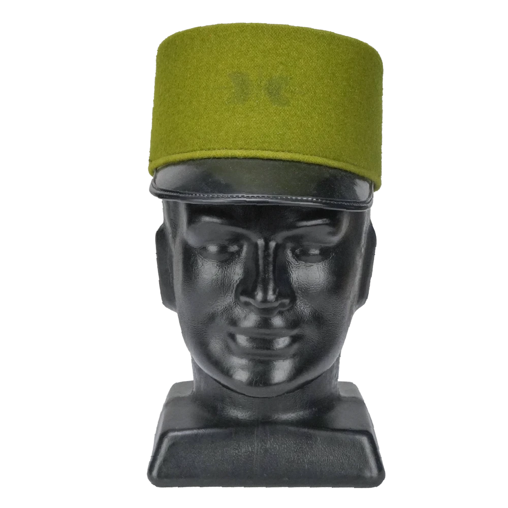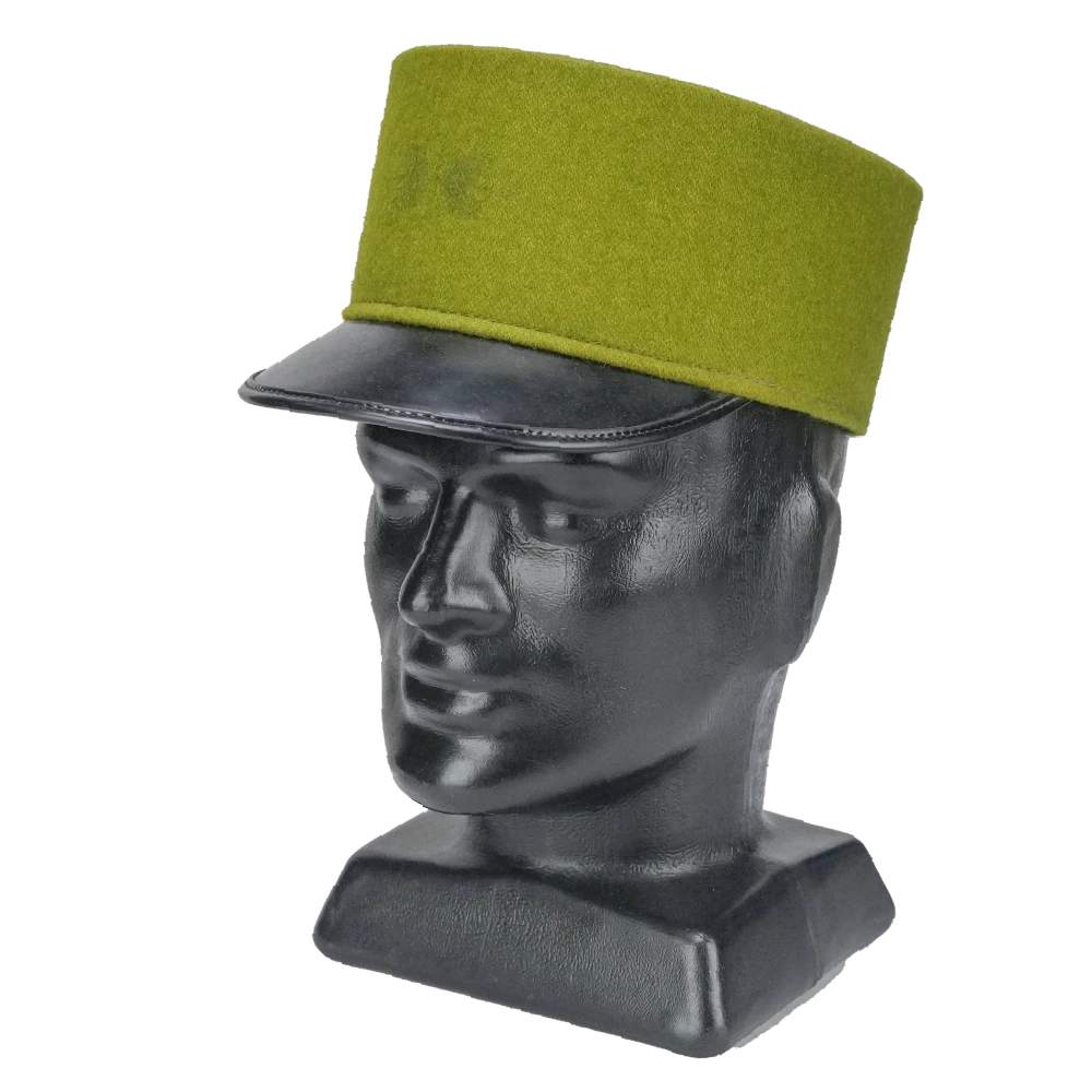 Hills Hats olive kepi in used/very good condition. This is an ex-film production stock item that has been modified and may no longer function for its original intended purpose.