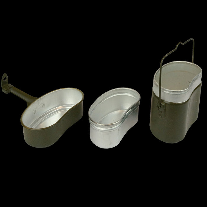 Well, well well. If it isn't another European mess kit that looks oh-so-similar to other European mess kits. Must be doing something right, then! These 3 piece kits come to us from the Italian Army. A nice addition for your loadout or camping trip!