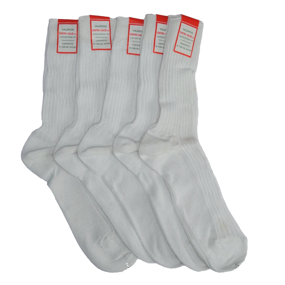 Italian Army white socks supplied as a 5 pack. Made from Mercerised American Cotton and finished in plain white.