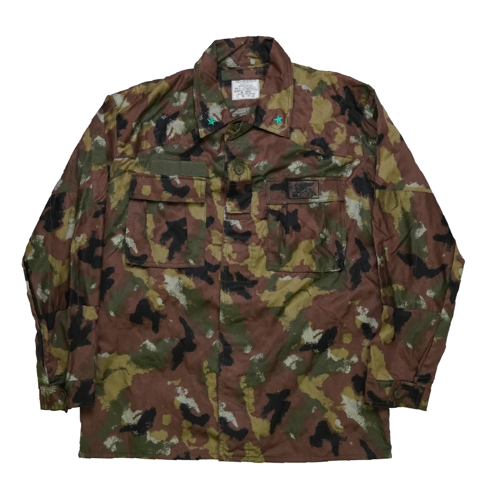 Italian San Marco field shirt in 3XLarge sizing. Standard field shirt cut with front closure and chest storage typical of military issue garments.