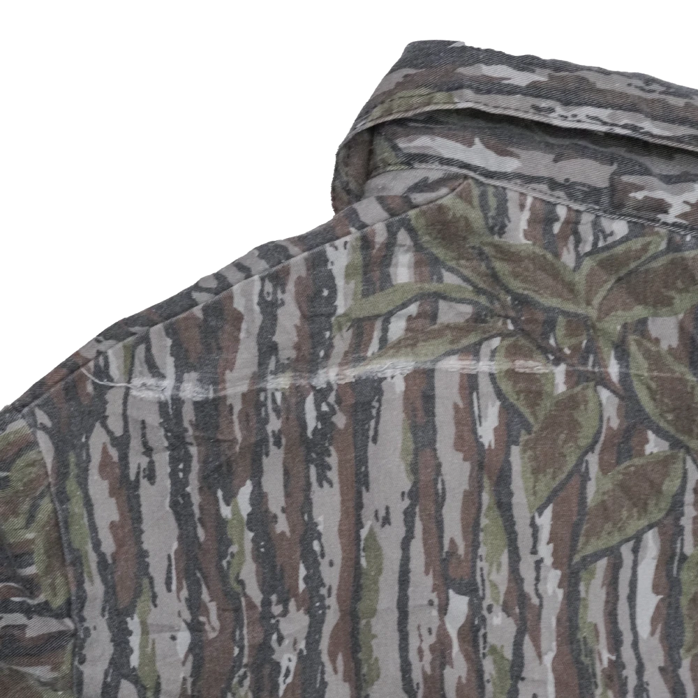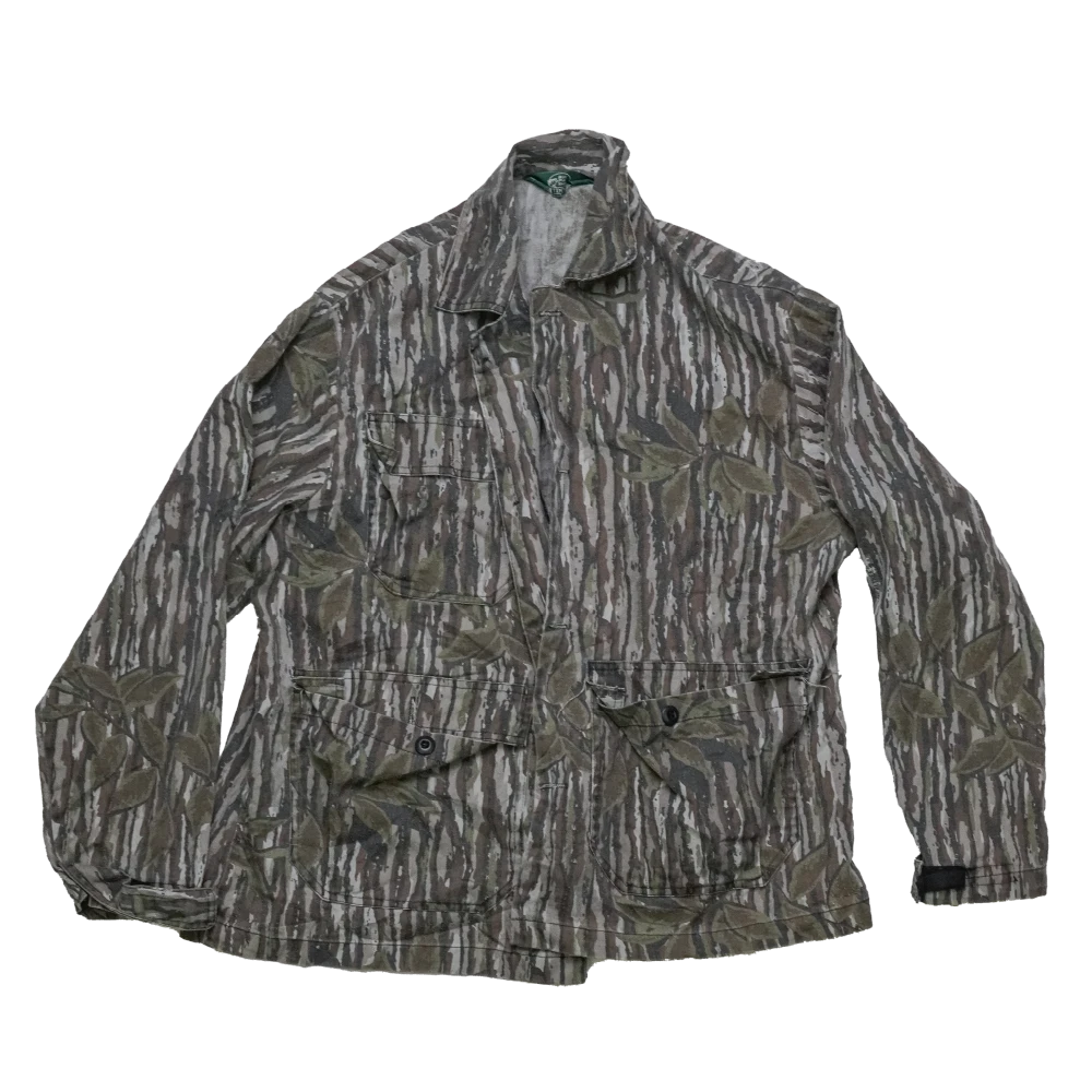 Commercial Ladiga Sportswear field shirt in Realtree camouflage, made in the USA. Standard button-front construction with chest pockets and a traditional collar.