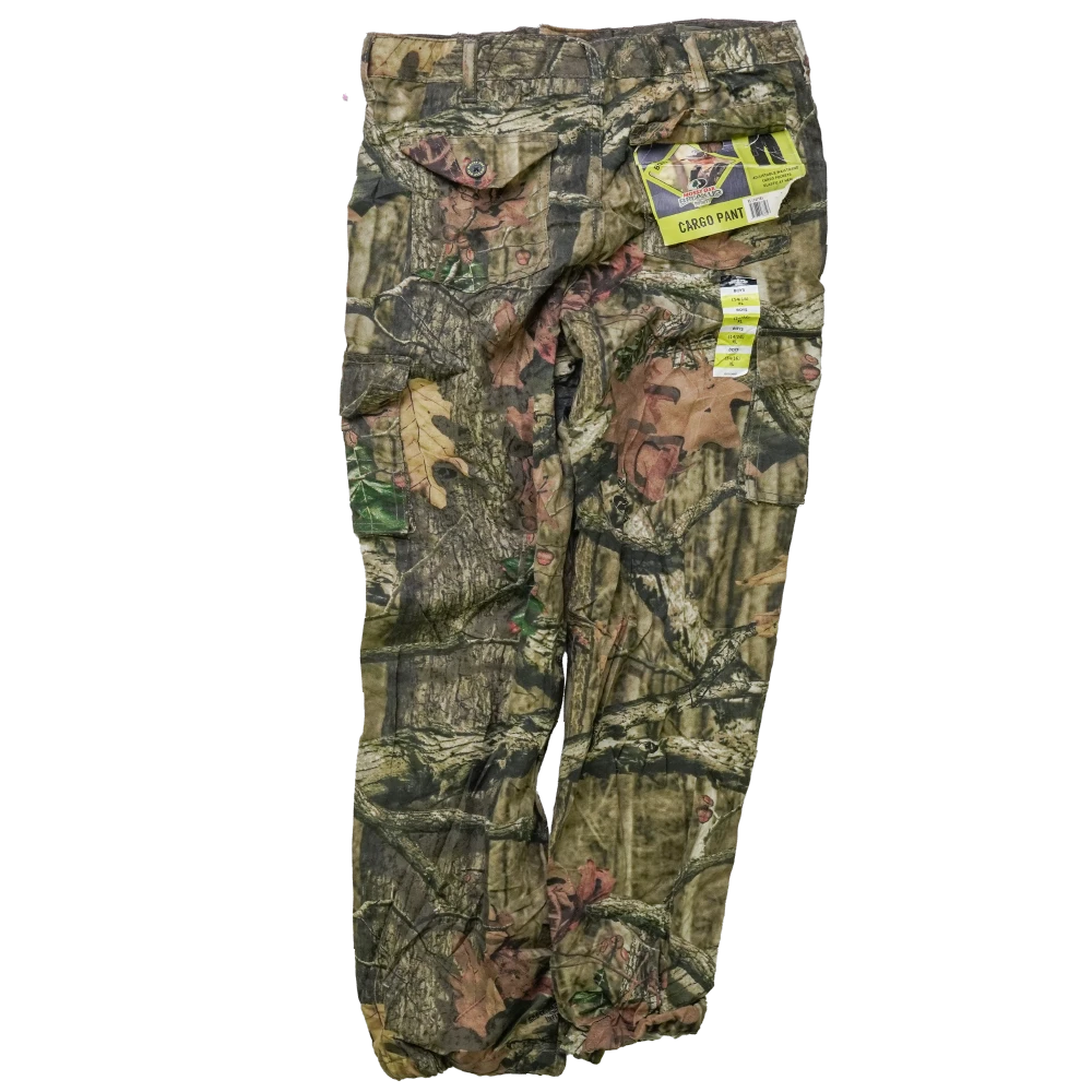 Mossy Oak Kids Breakup Infinity Camo Pants in Youth XLarge (14–16). Features the Breakup Infinity camouflage pattern and a lightweight build at 0.6kg.