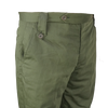 NZ Army service trousers in olive polyester. They have a clean plain-leg dress cut with angled front pockets, a rear welt pocket, and buttoned waist tabs.