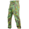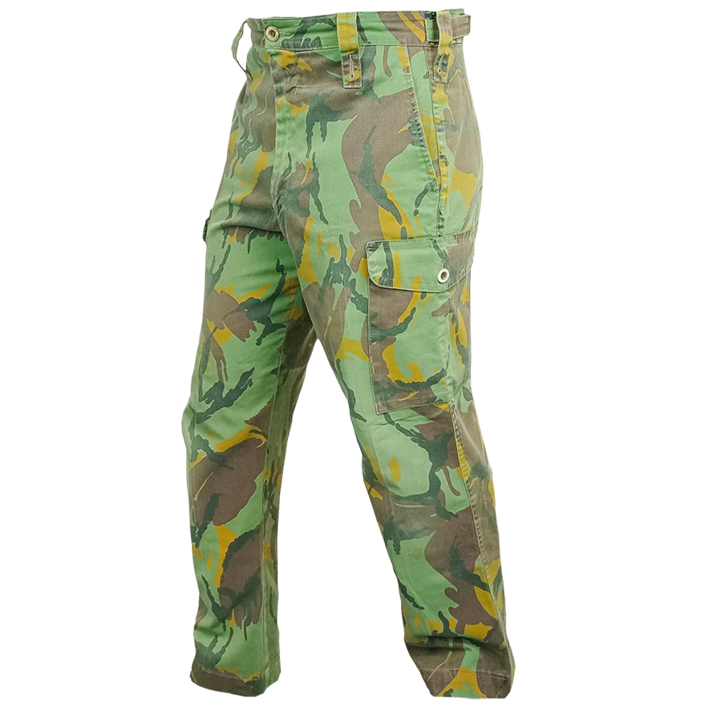 These trousers from around the mid the 80's have a classic mishap of NZ camouflages - weird colours. These are adorned with blue-greens, ultra mustard yellows. Quite outrageous and when faded, even more so. As these were a winter weight fabric, eventually people realised this uniform was not only difficult to blend in with, but too heavy for New Zealand's climate. These are one for the collectors!