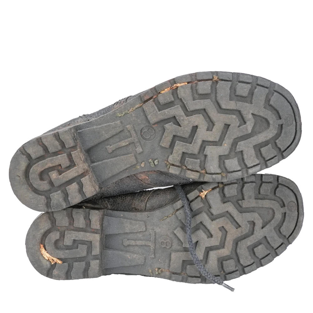 Genuine NZ Army leather ankle boots in used/good condition. Classic black leather construction with a lace-up front and low ankle height.