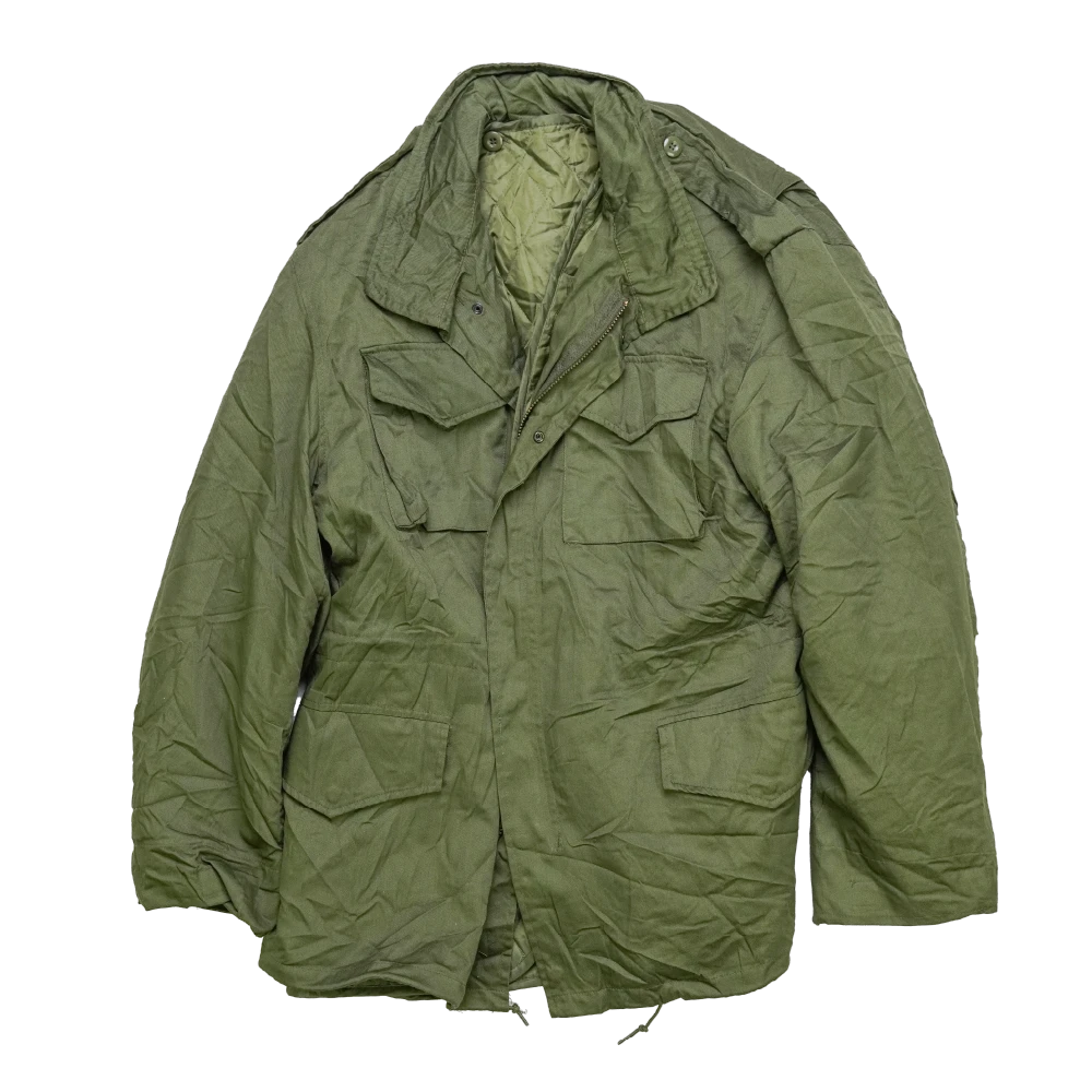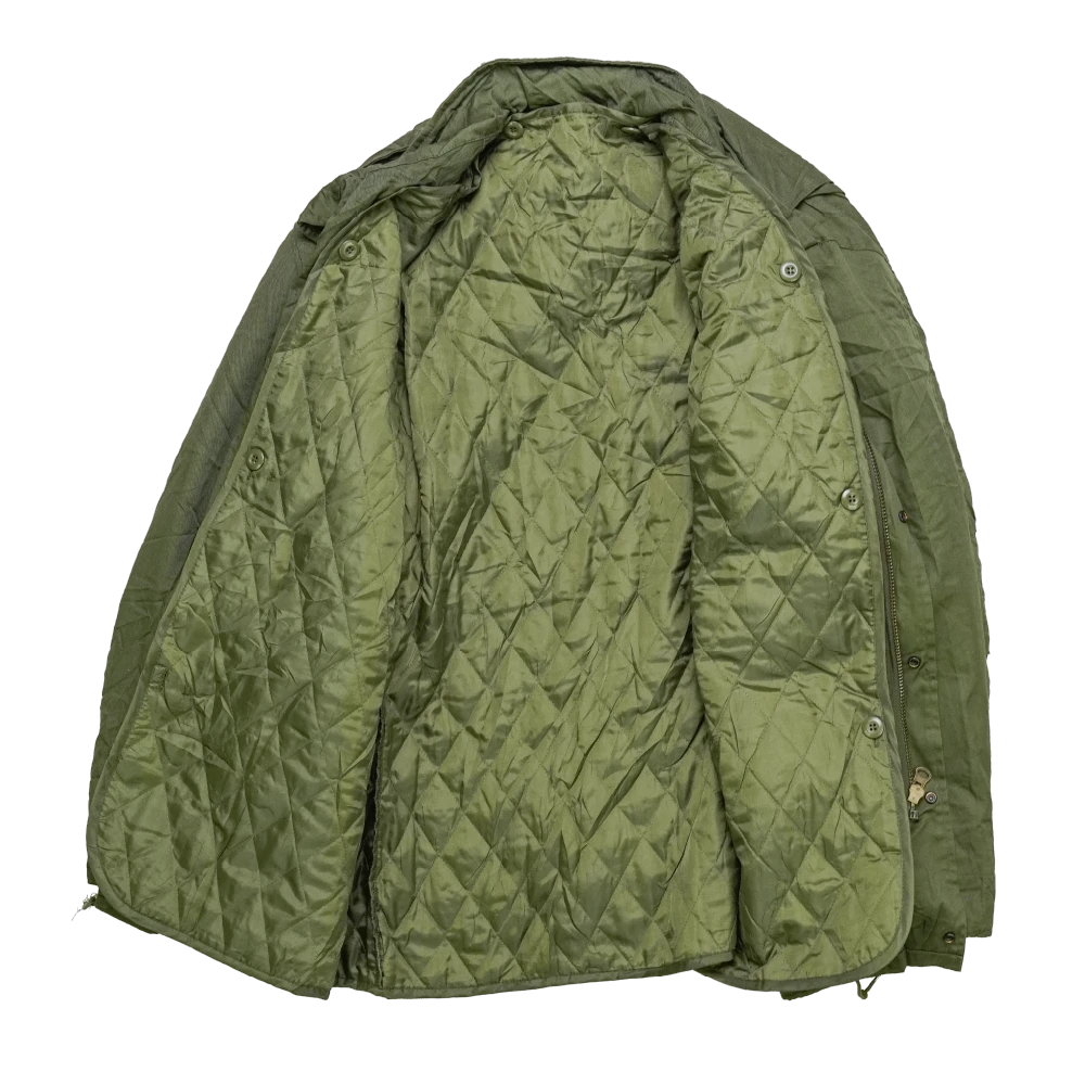 Commercial M-65 style jacket in olive drab, supplied with a liner. Mid-length field jacket design with a classic military-inspired cut.