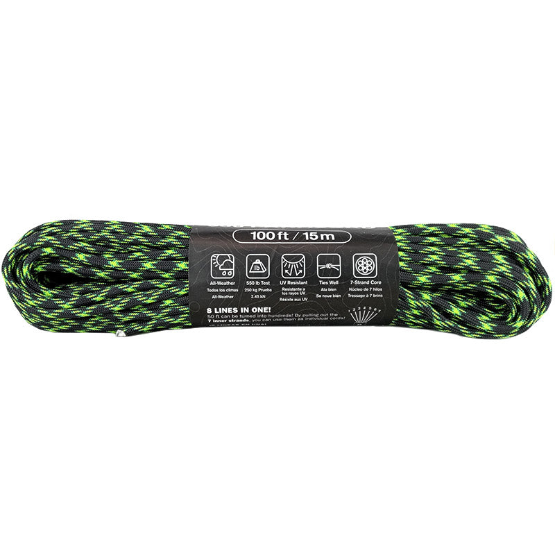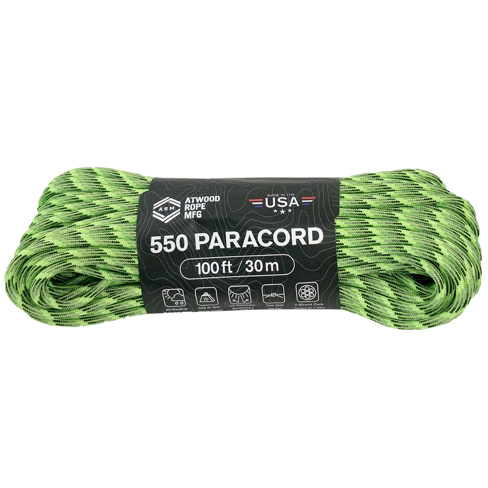 This 550 paracord is a must have! Extremely versatile, lightweight and quality made in the USA. The uses for these are near endless - boot laces, jury rigging, retention for mag pouches, impromptu washing line, snare traps for hunting, securing extra kit onto a bag, its up to your imagination!