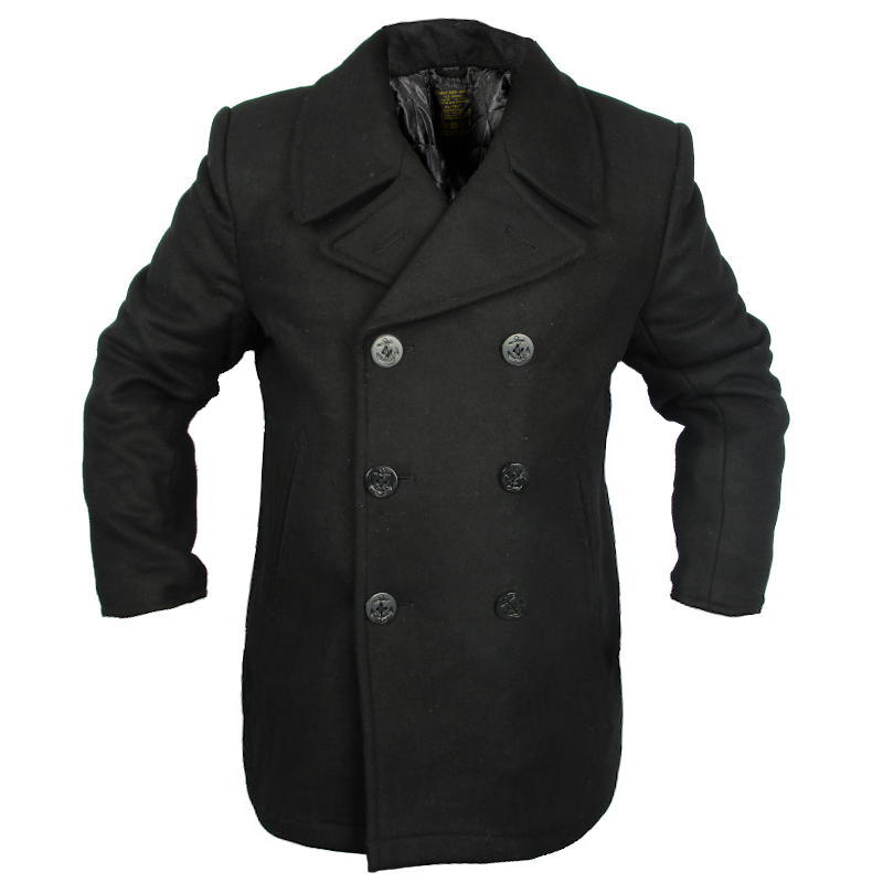 The Navy pea coat has a long history dating back 3 whole centuries. Originally of European design, the United States followed suit and came up with their own version. The current issue version is a dark navy blue, these quality reproductions are in a more fashionable black. Despite the incredibly large service time, not much has changed in the design and function of the coat.