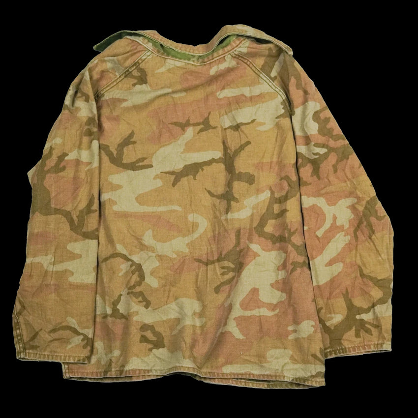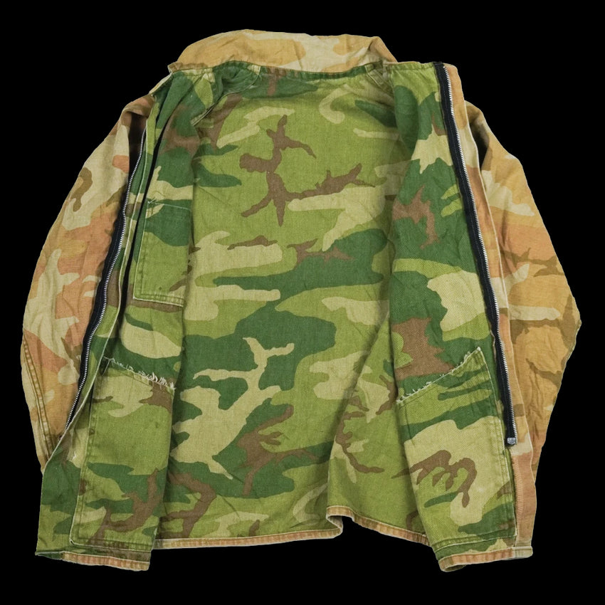 Commercial reversible jacket manufactured by Ranger during the 1970s. The jacket features a reversible woodland and autumn design, with hip and chest pockets on both sides.