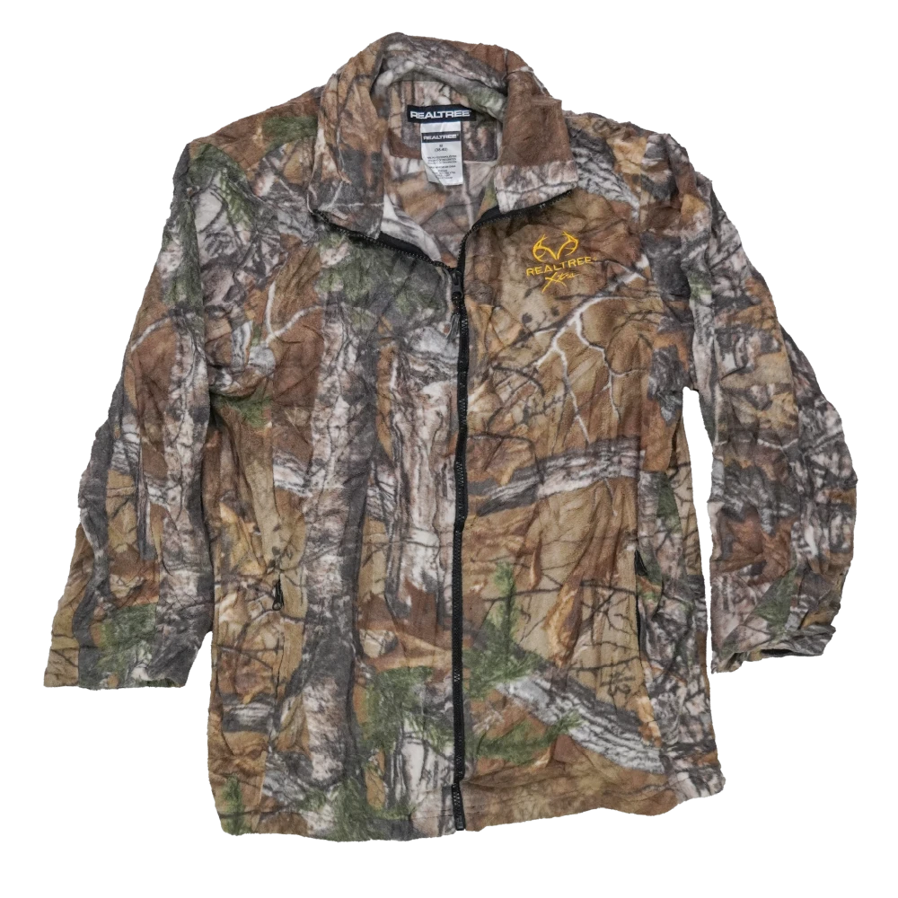 Lightweight fleece jacket in Realtree camouflage. Soft fleece construction with a simple jacket-length cut.