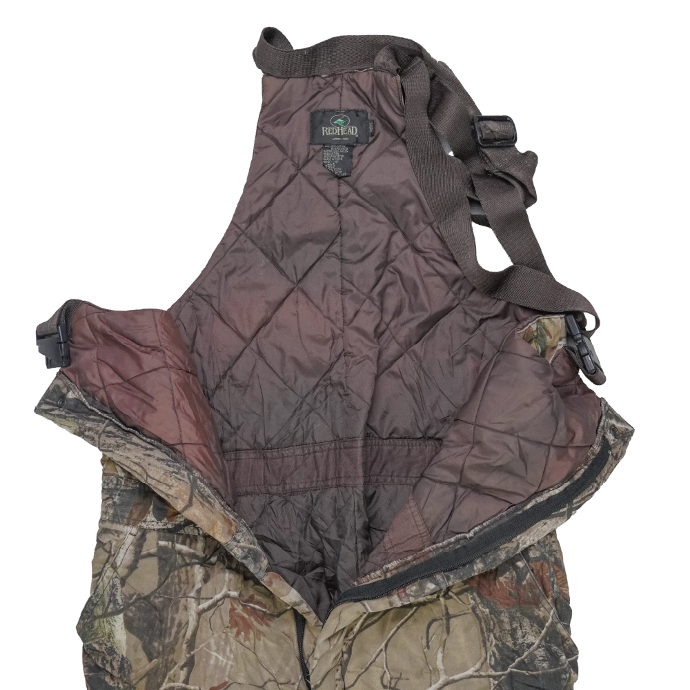 Redhead Realtree lined bib overalls. Overall-style trousers with an attached bib front and lined interior for added warmth.