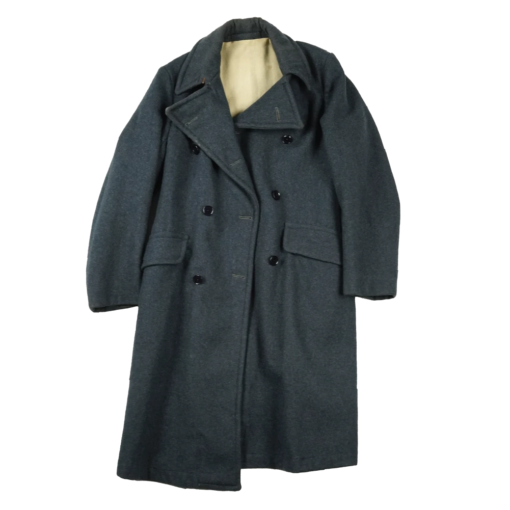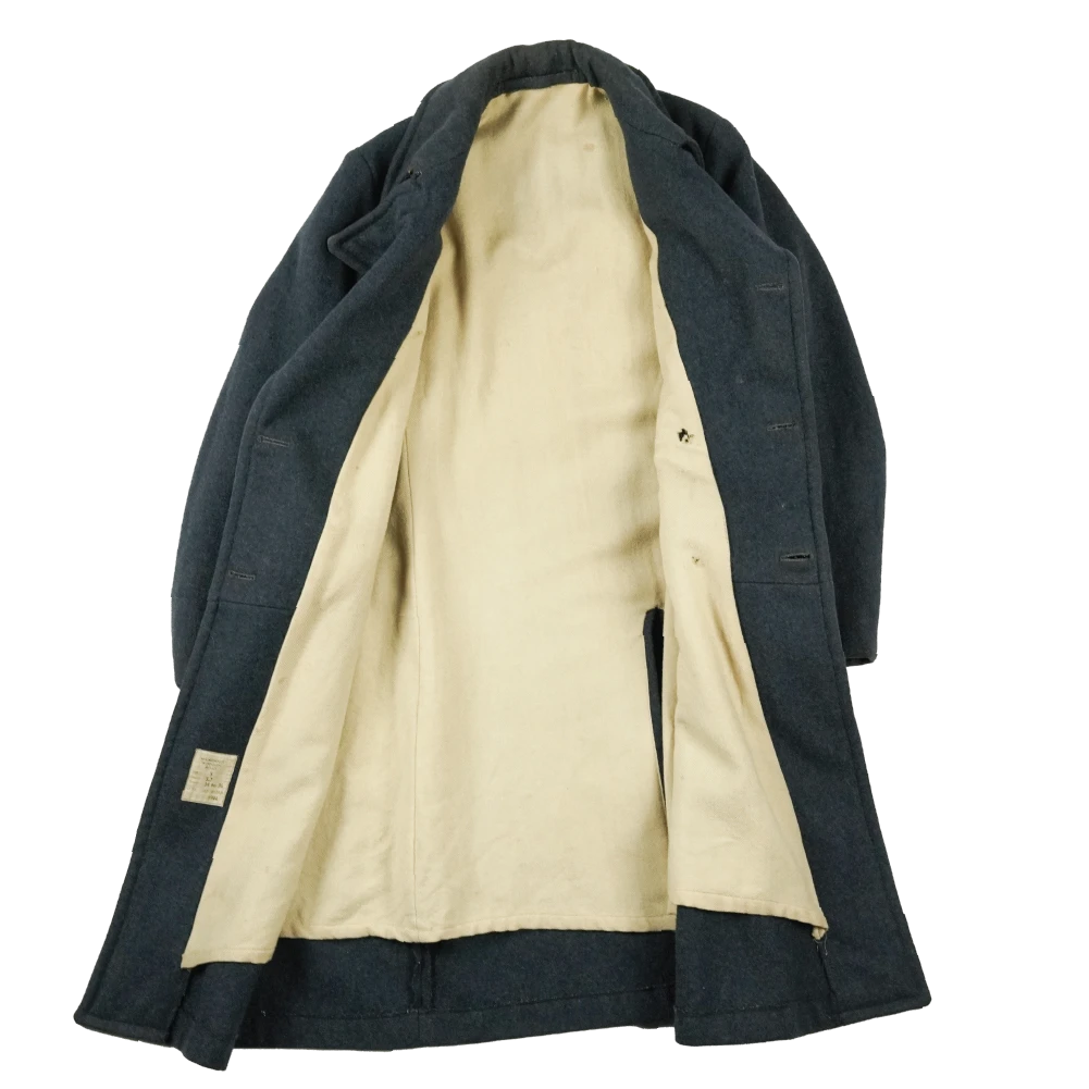 Royal New Zealand Air Force wool coat manufactured in New Zealand and dated 1944. This is a heavy wool outer coat with period military construction consistent with mid-20th-century service garments.