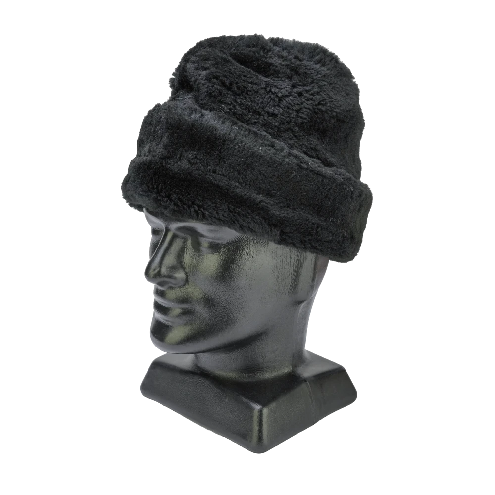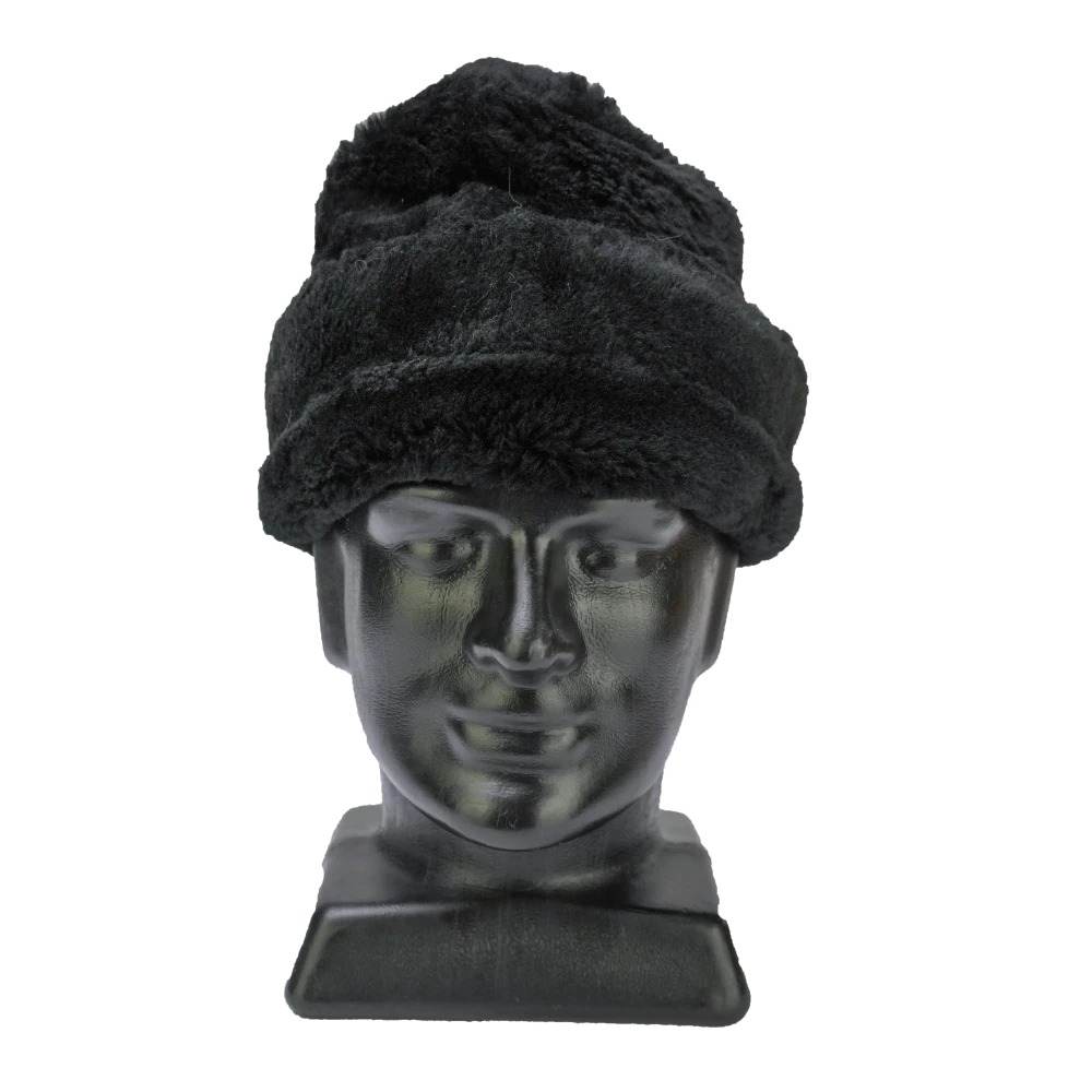 Romanian Army fur hat in black. Wool blend outer with a cotton shell construction and thick faux-fur style lining throughout.