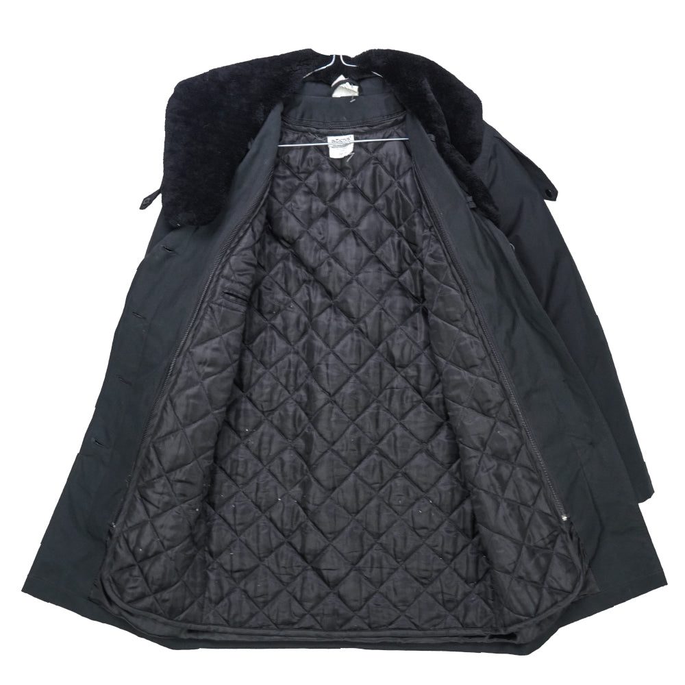 Romanian Naval Academy surplus parka in a long coat style. Military surplus outer garment with a parka-length cut and durable construction.