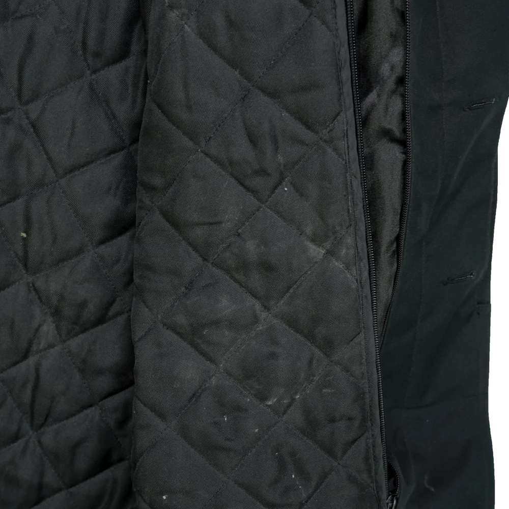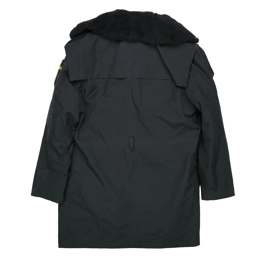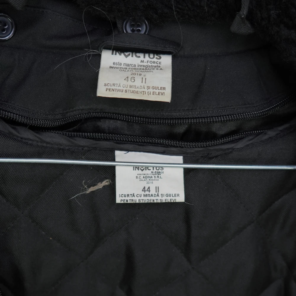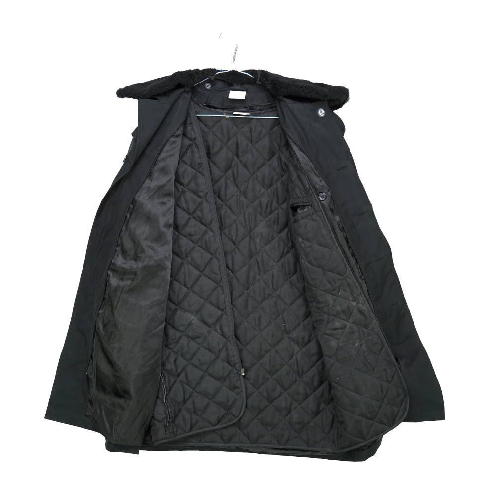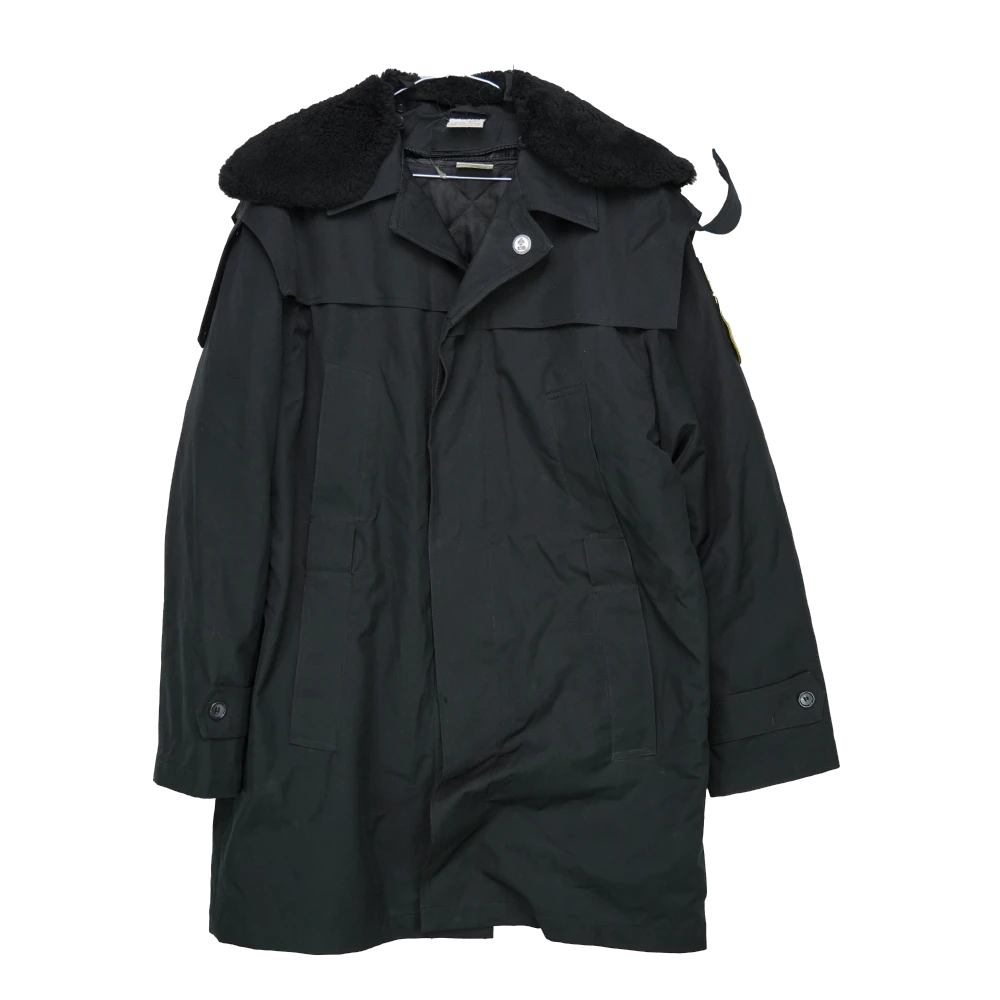 Romanian Naval Academy surplus black parka. Features a full front zip closure and insulated liner.
