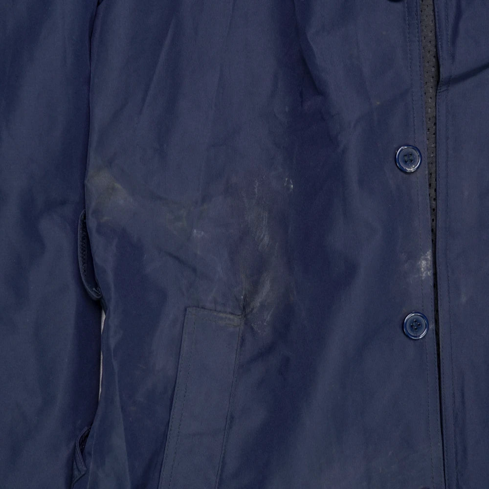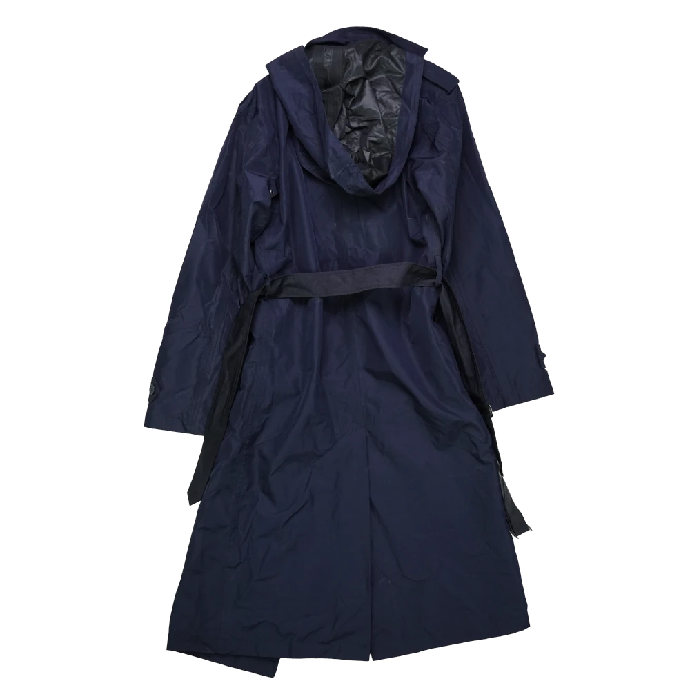 Romanian Navy surplus waterproof trenchcoat in used/fair condition. Long cut with full-length closure and seam-taped construction.