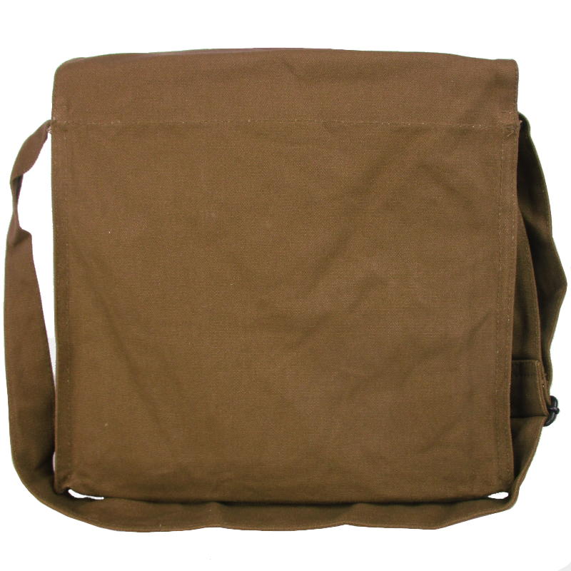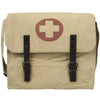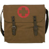 This medic's bag is stone washed canvas, giving it a vintage look. It features the iconic red medics cross that stands out on the stone washed material. The large compartment comes equipped with brown leather straps, offering a large amount of storage space and style. On the back is a canvas adjustable shoulder strap, finishing off the messenger bag design.