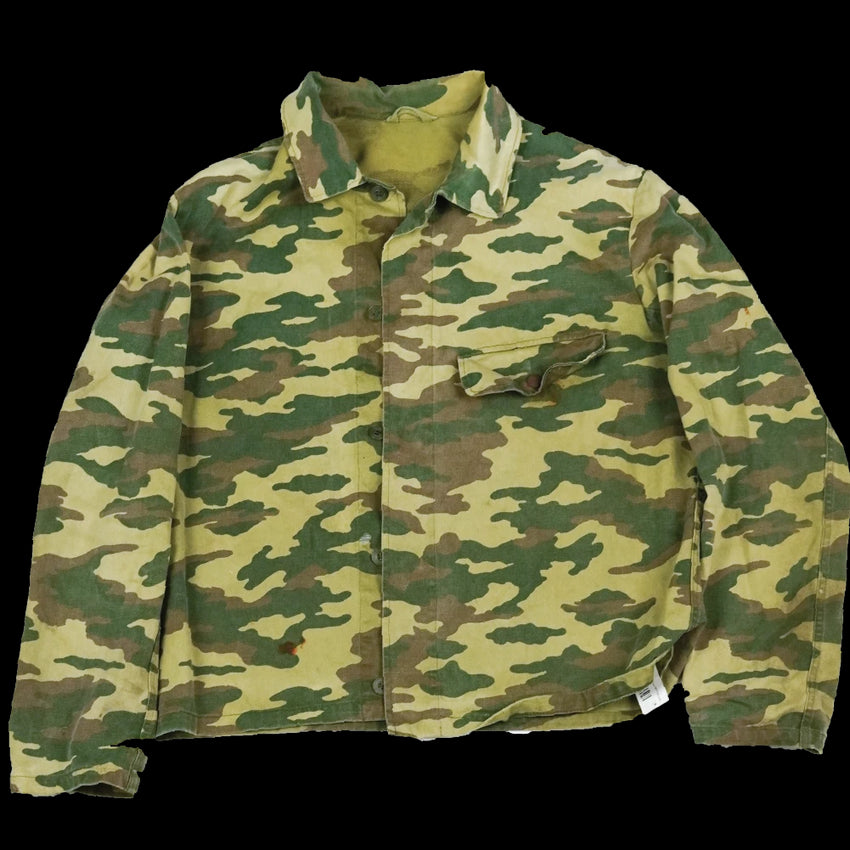 Russian VSR 98 work jacket in VSR camouflage pattern. The jacket features a simple workwear-style construction consistent with surplus utility garments.