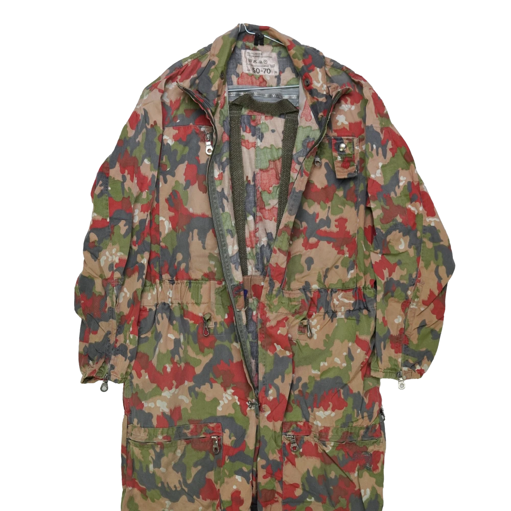 Swiss Alpenflage tanker coveralls in medium XShort sizing. One-piece construction with full-length leg coverage and integrated upper body.