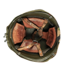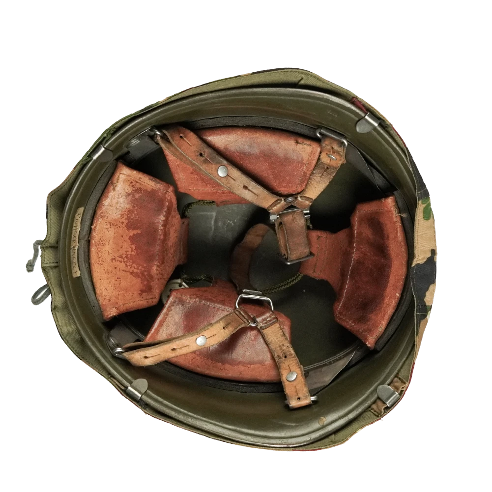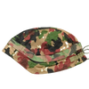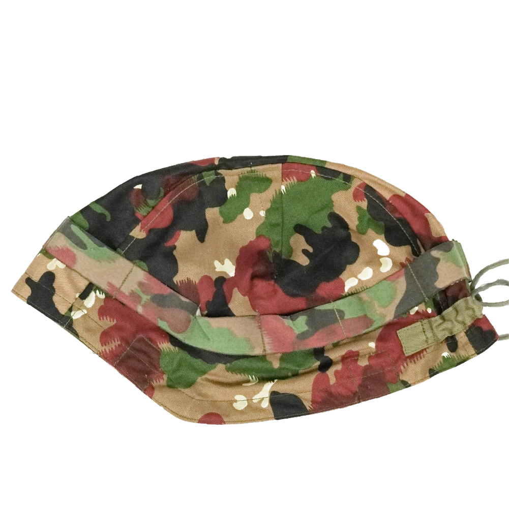Swiss M71 helmet cover in Alpenflage camouflage. Fabric cover designed to fit the M71 helmet profile, with edge finishing and attachment points.