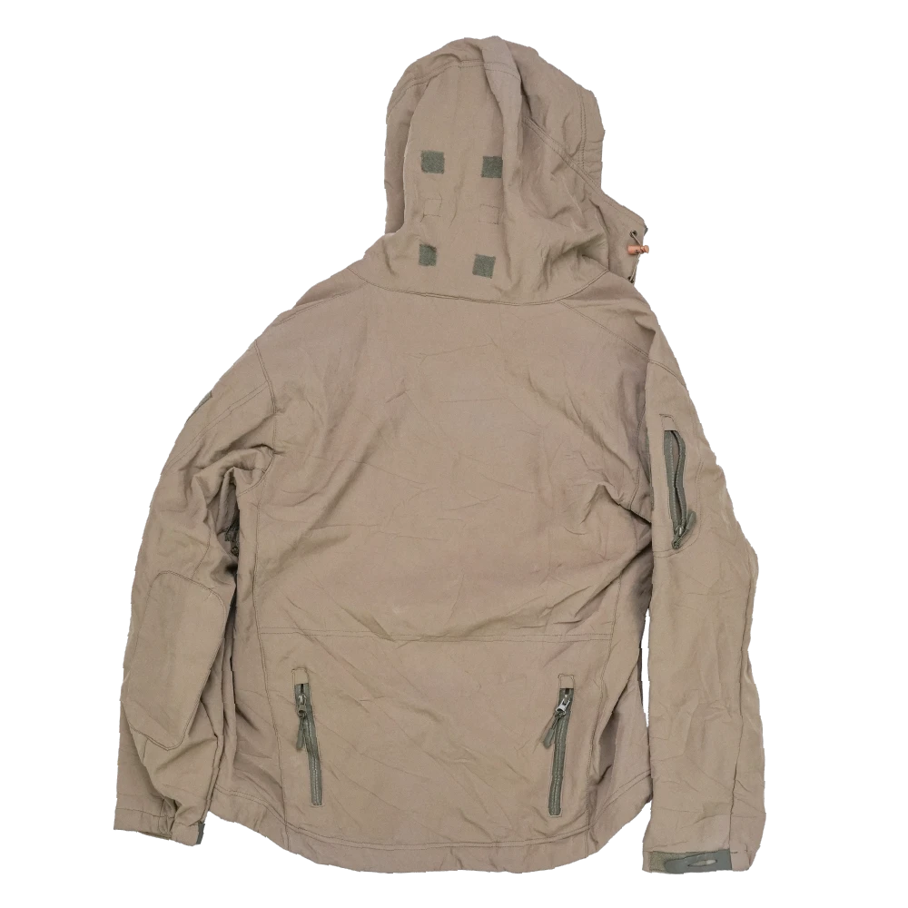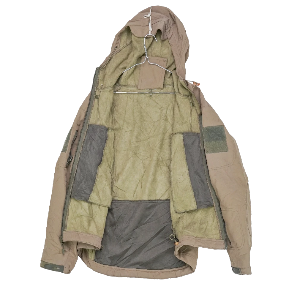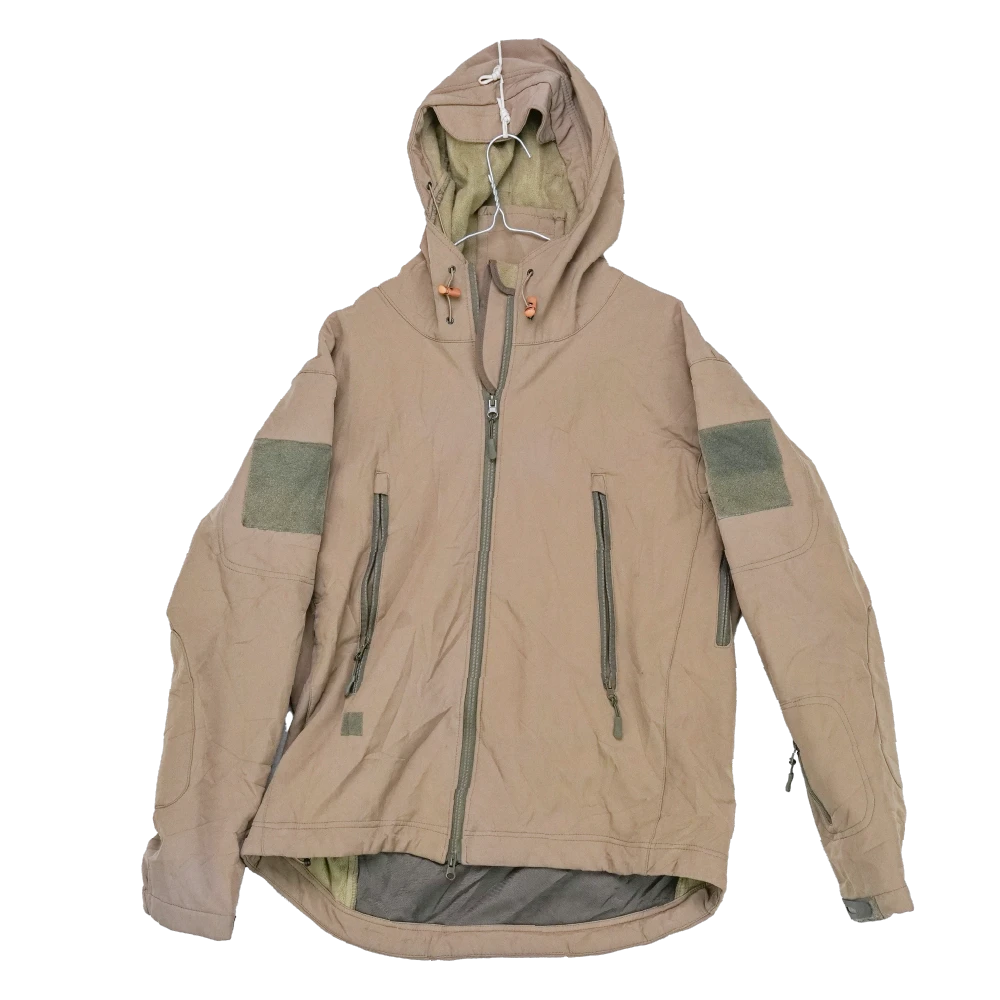 Triple Aught Design softshell jacket in Medium sizing. Commercial garment with a softshell outer construction and standard jacket styling.