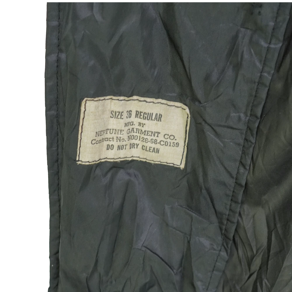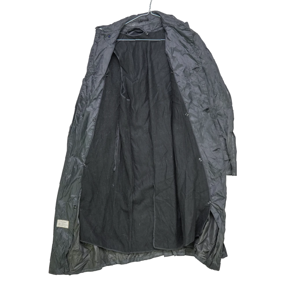 U.S. Air Force nylon overcoat with liner from a 1968 contract. Military-issue construction with a removable liner and classic long overcoat cut. Tagged Small.