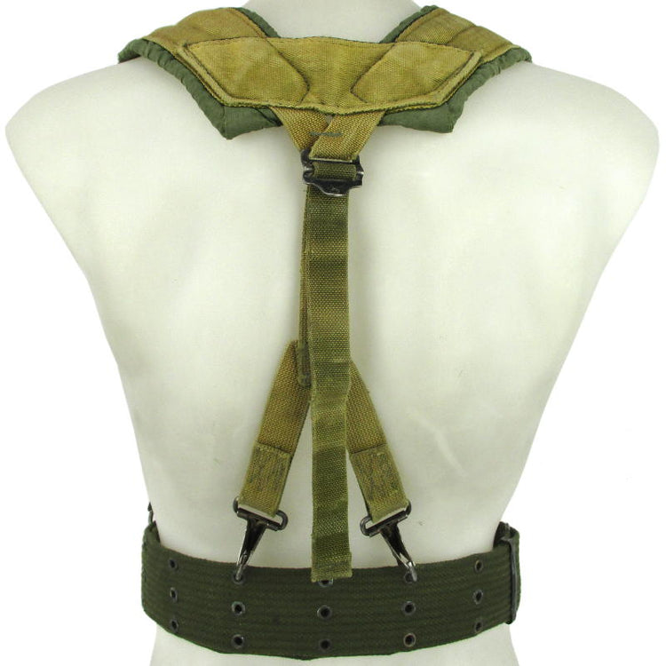 The Nylon LC1 harness system was introduced by the US military in the early 1970's to replace the canvas M-1956 series. Due to the nylon build these weighed a lot less when soaked in the jungle and had a longer life span. If your looking to lug a ALICE belt and pouches, then these are for you. When set up correctly, these suspenders can help shift some of the weight off your waist to balance it on your shoulders. You can also attach more gear to the shoulder straps using the D-rings.