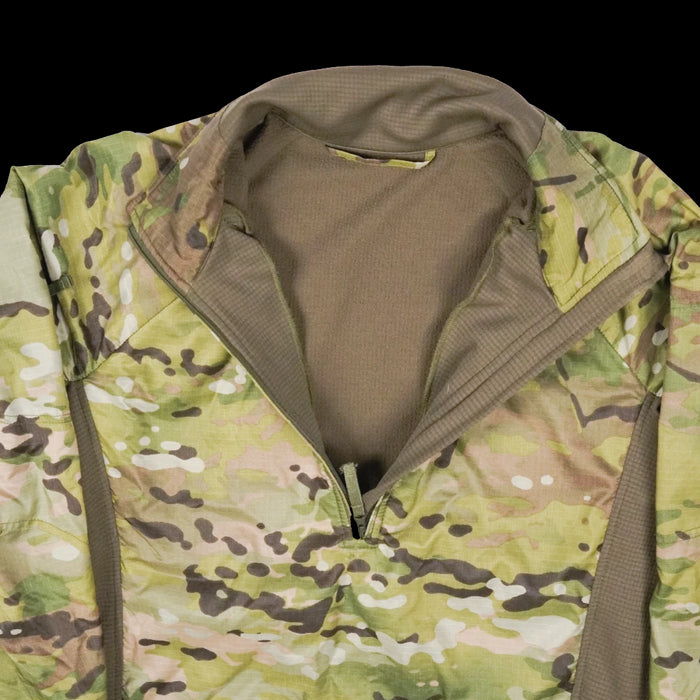 Commercial UF Pro Gen. 1 Hunter Jacket in Multicam pattern. This jacket features a thermal design with moisture-wicking fabric, a quarter-zip front, and a high collar. Elasticated cuffs and zip-closure sleeve pockets are present.