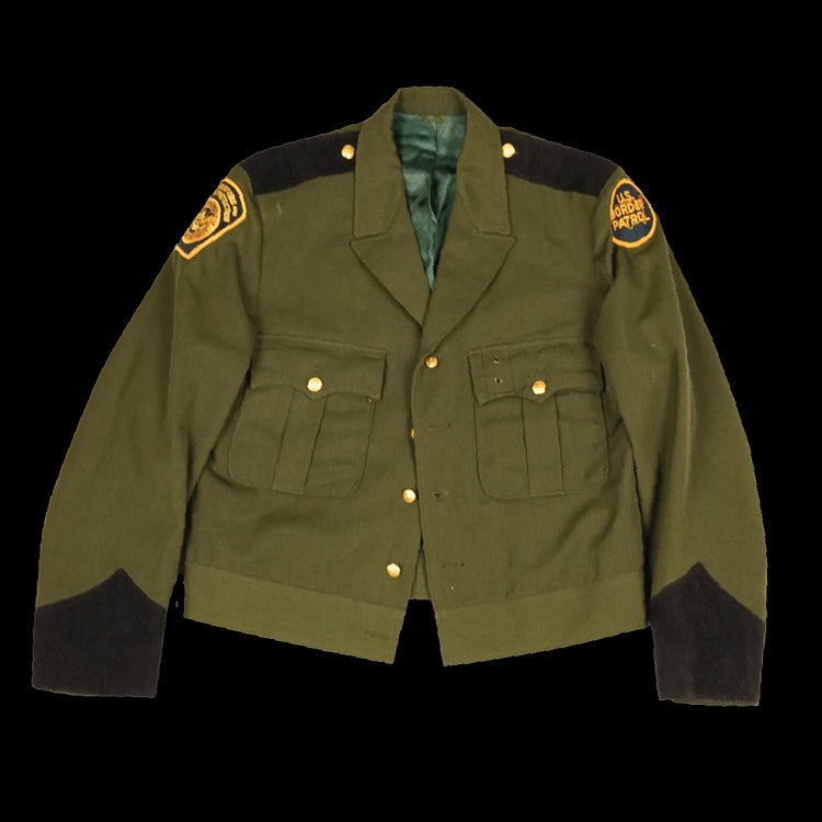United States Border Patrol service dress jacket from the 1960s. This is a uniform-style dress jacket presented as a single garment.