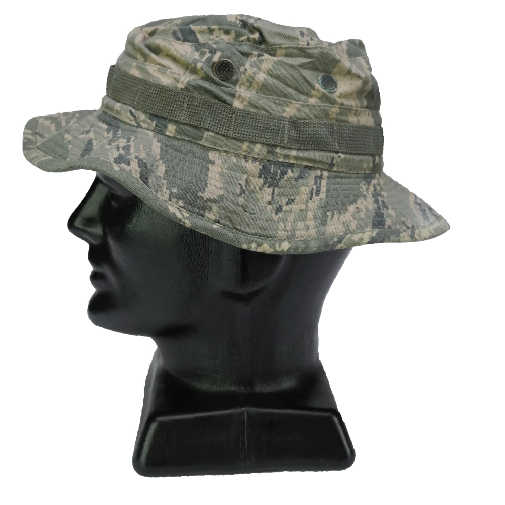 US Air Force ABU pattern boonie hat. Features a wide brim and metal ventilation eyelets.
