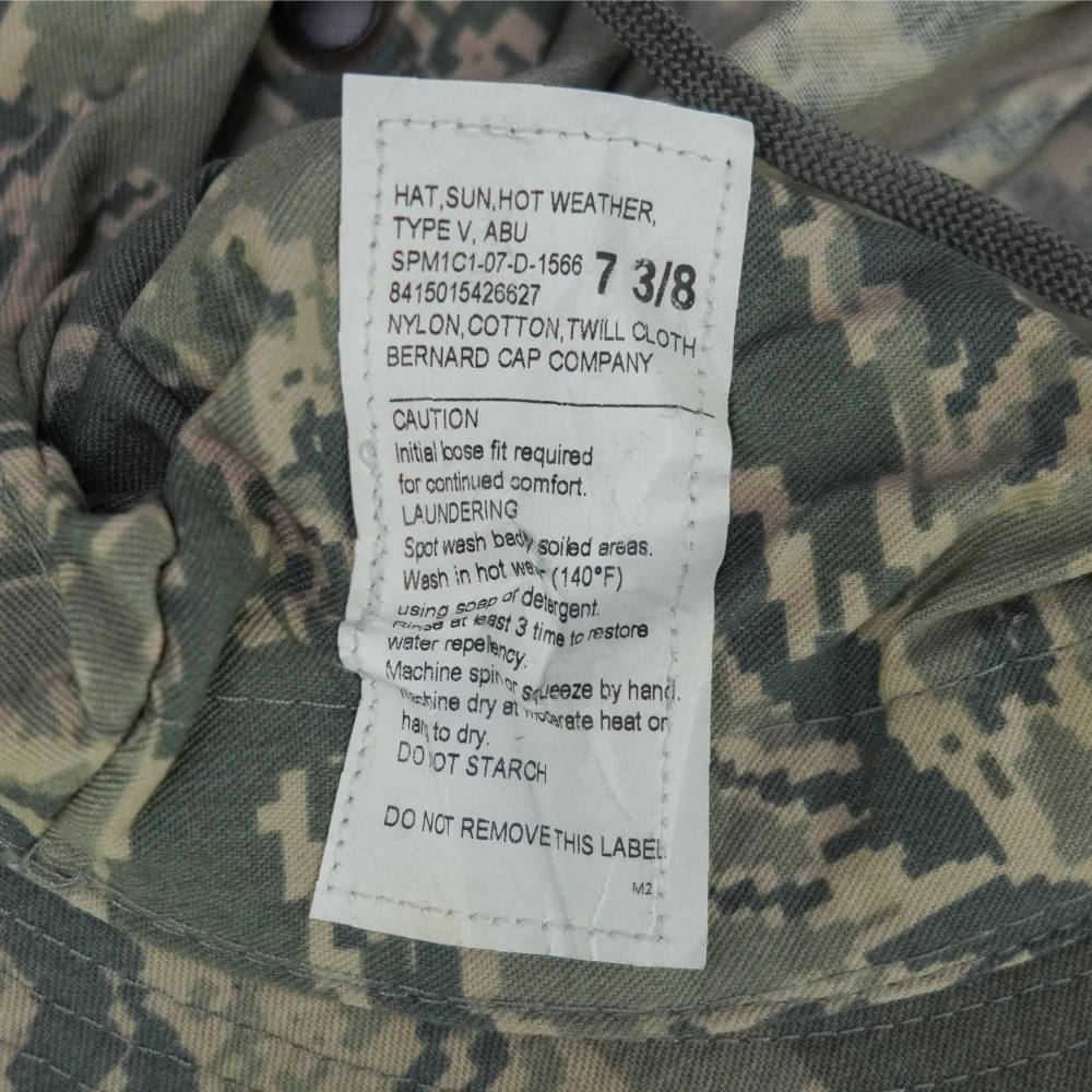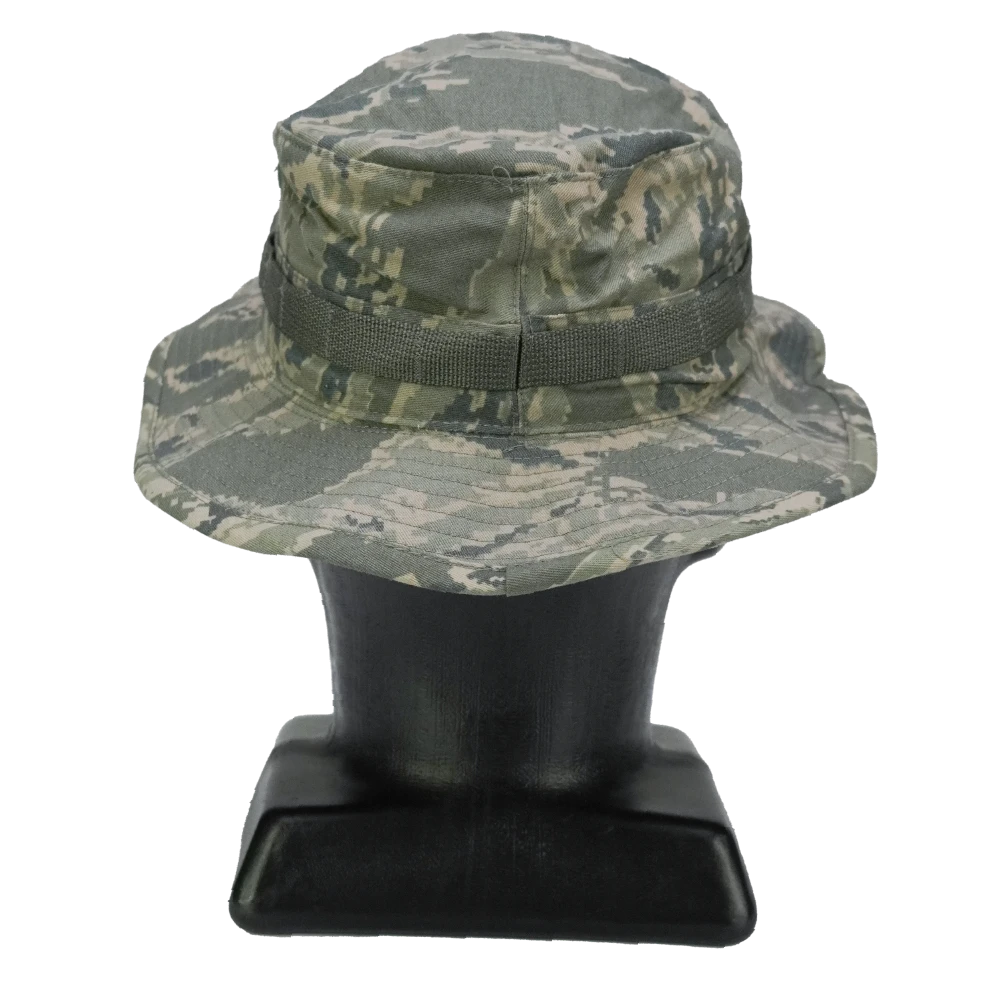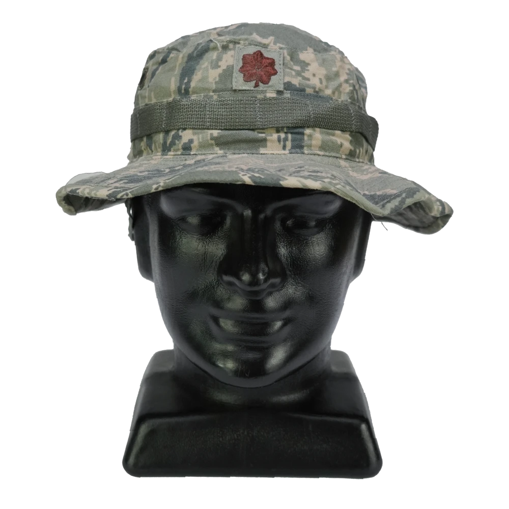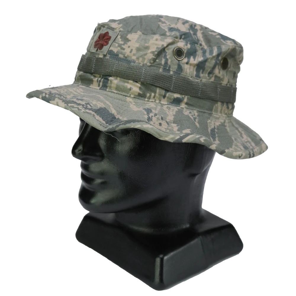 US Air Force ABU pattern boonie hat with Major rank insignia attached. Features a wide brim and stitched crown in the ABU camouflage pattern.