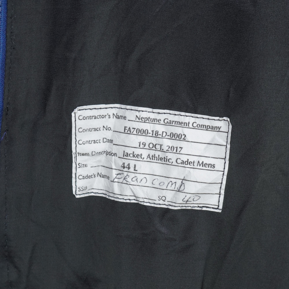 Cadet uniform jacket from the United States Air Force Academy. This example retains its manufacture label dated 2018.