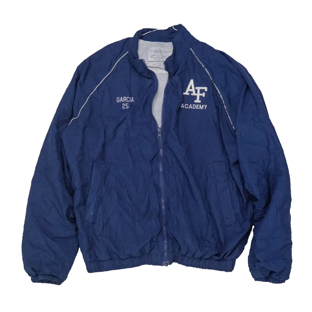 US Air Force Academy physical training jacket in XSmall-Regular sizing. Lightweight construction with a simple athletic-style design suitable for training wear.