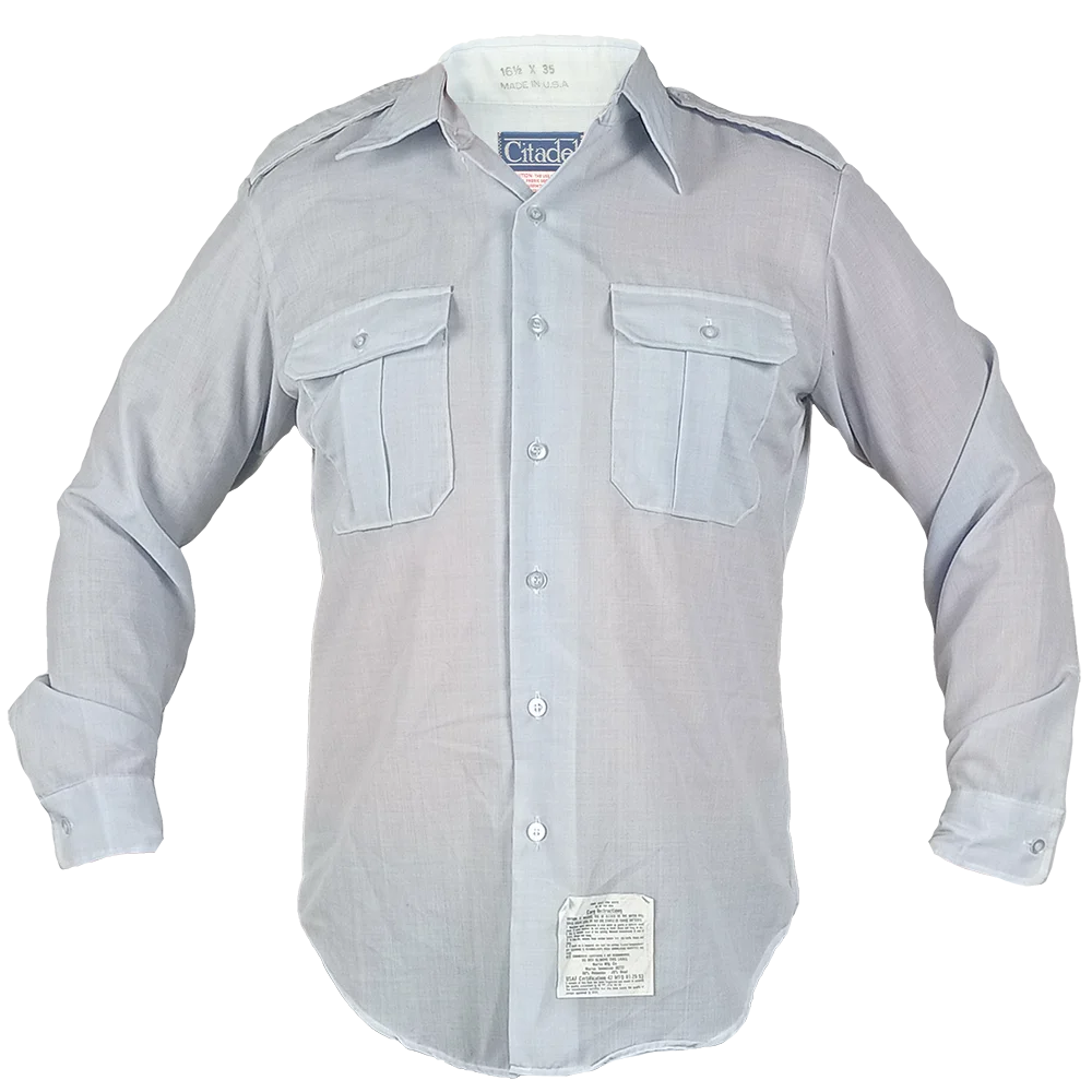 This US Air Force Blue service dress shirt features a long-sleeve, button-up design tailored for more formal military occasions. Crafted to meet uniform standards, it offers a sharp, professional appearance while ensuring comfort and durability throughout extended wear.