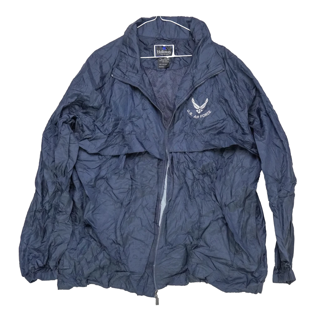 Lightweight windbreaker jacket with US Air Force branding. Features a simple outer shell with front closure and elasticated elements for fit.