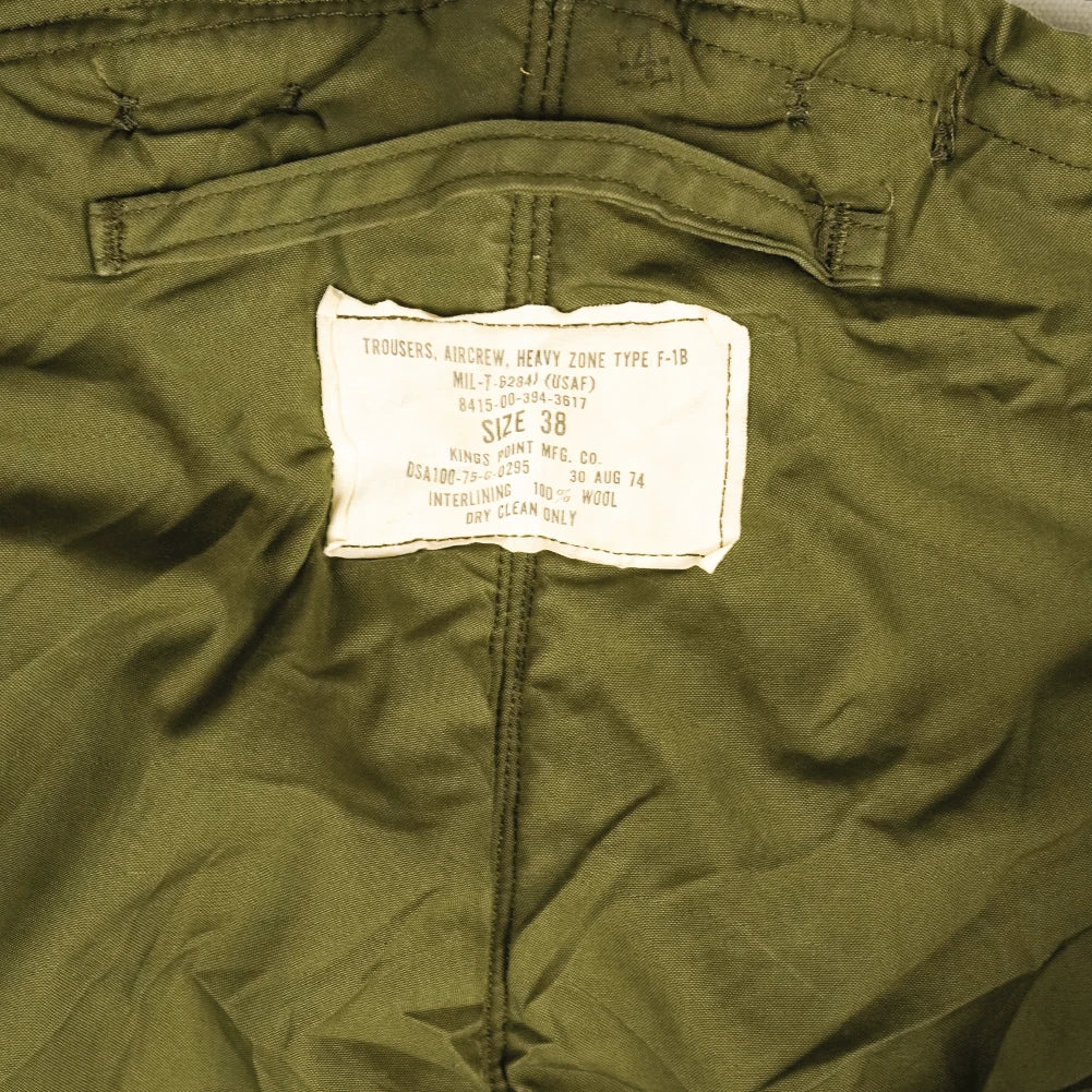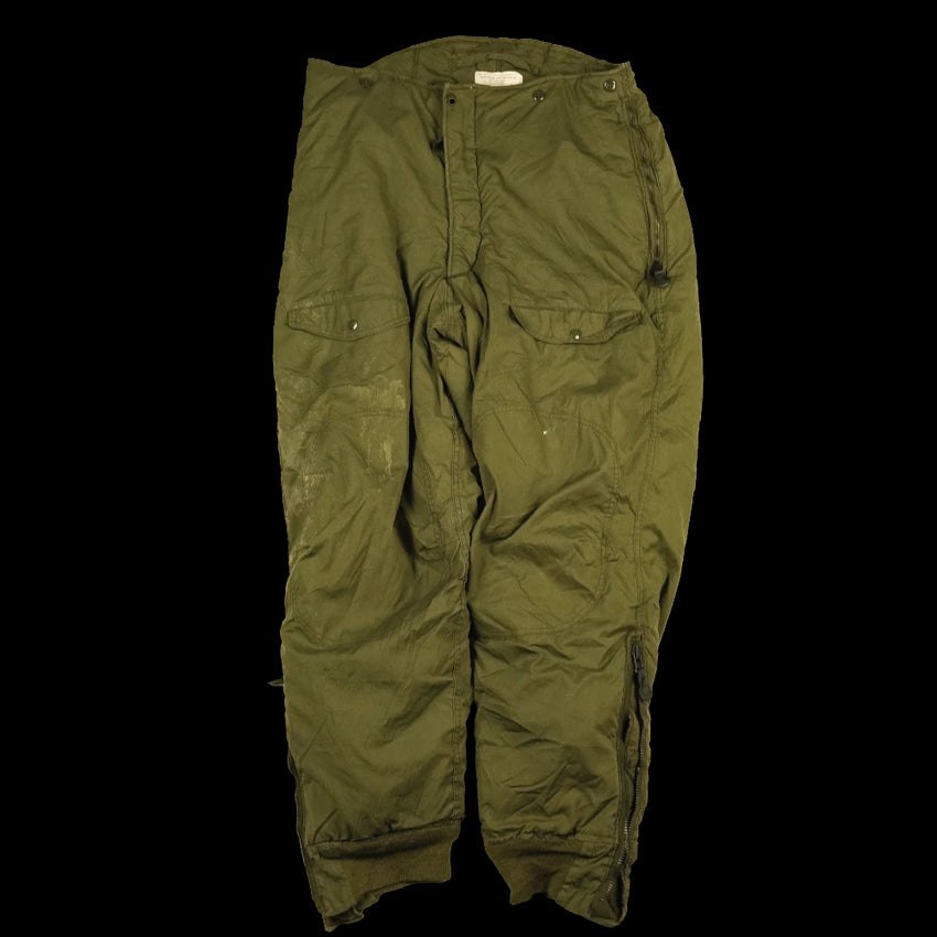 US Air Force F-1B extreme cold weather trousers. Heavy insulated construction designed for cold conditions, with a manufacture date of 30th August, 1974.