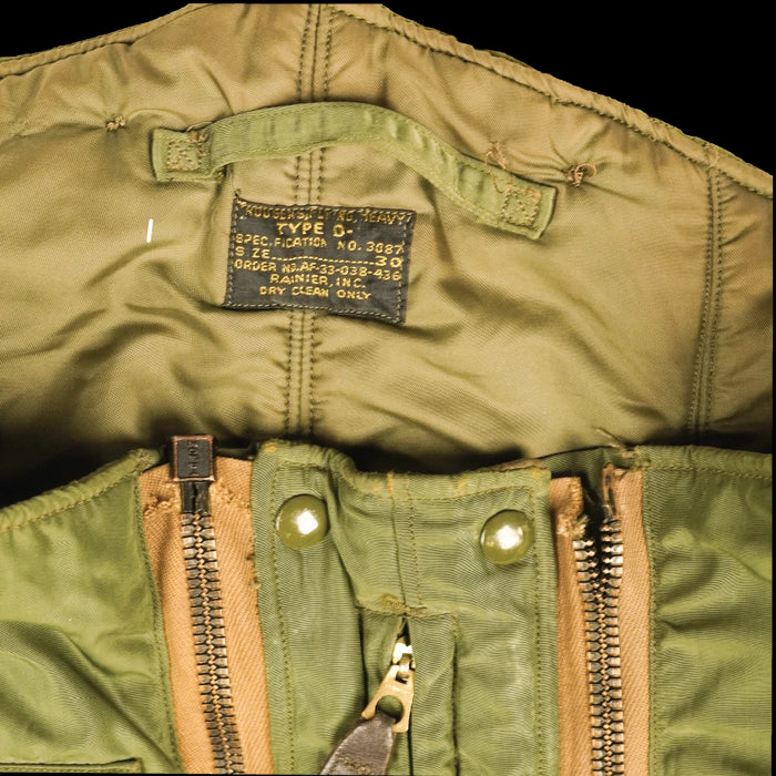 US Air Force D-1 flying trousers in a heavyweight construction. These are military surplus trousers with a zip fly closure.