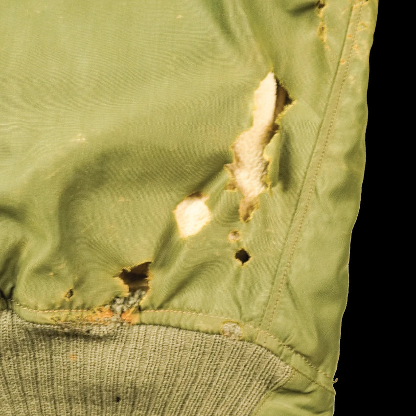 Value Grade condition. Burn holes are present at the ankle area and the zip is damaged.