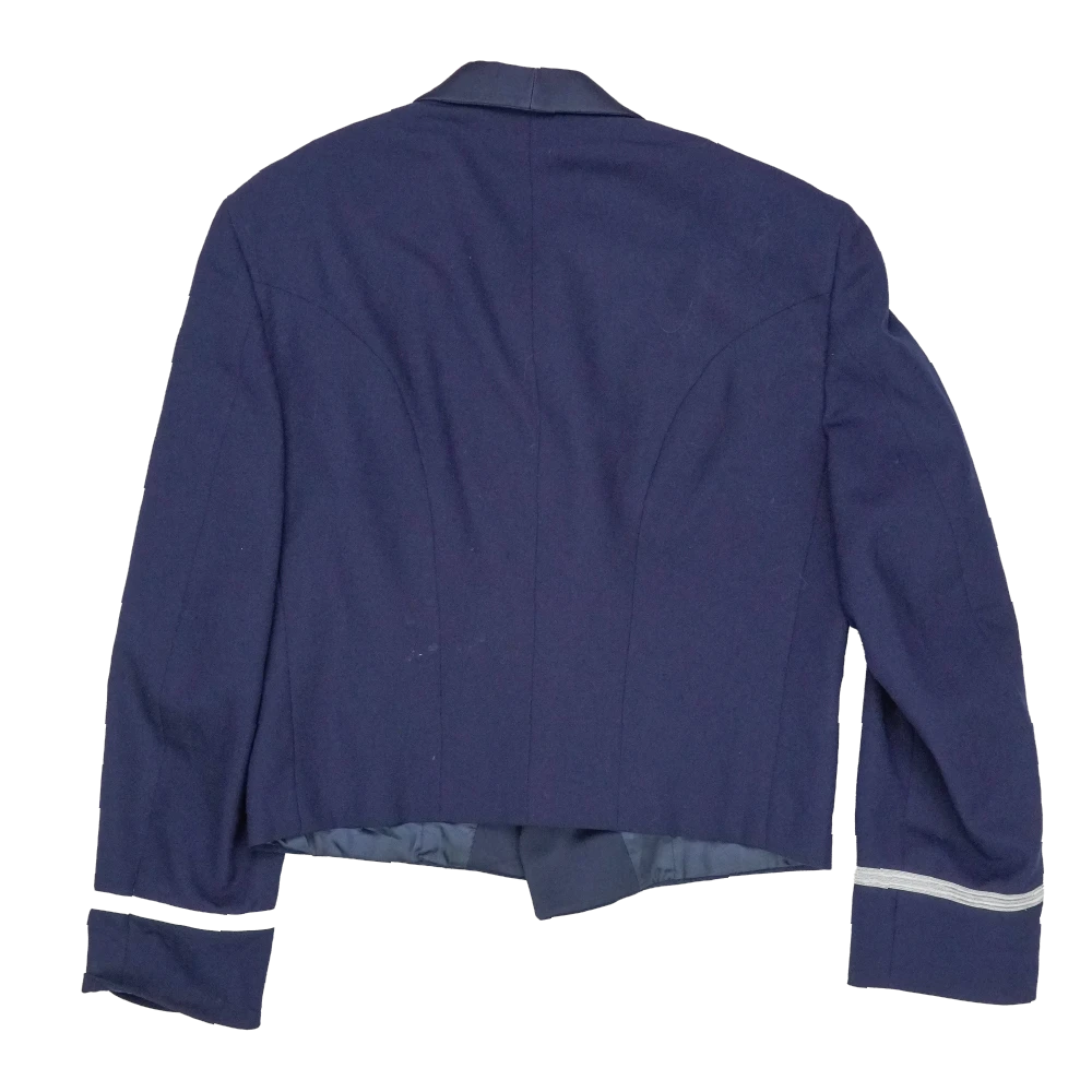 US Air Force officers mess dress jacket in formal service style. Tailored construction with a structured fit, featuring a front button closure and smooth outer finish.