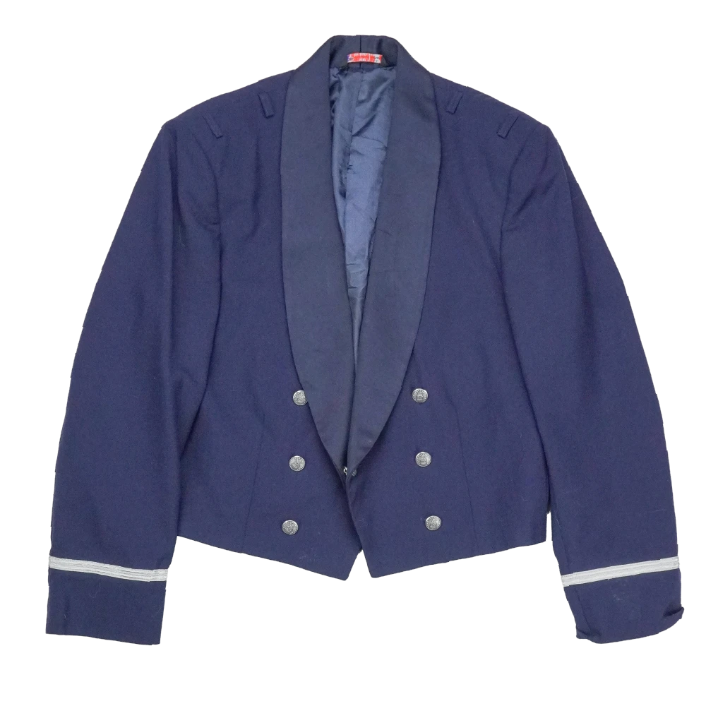 A formal dress uniform jacket designed for evening or mess dress occasions.