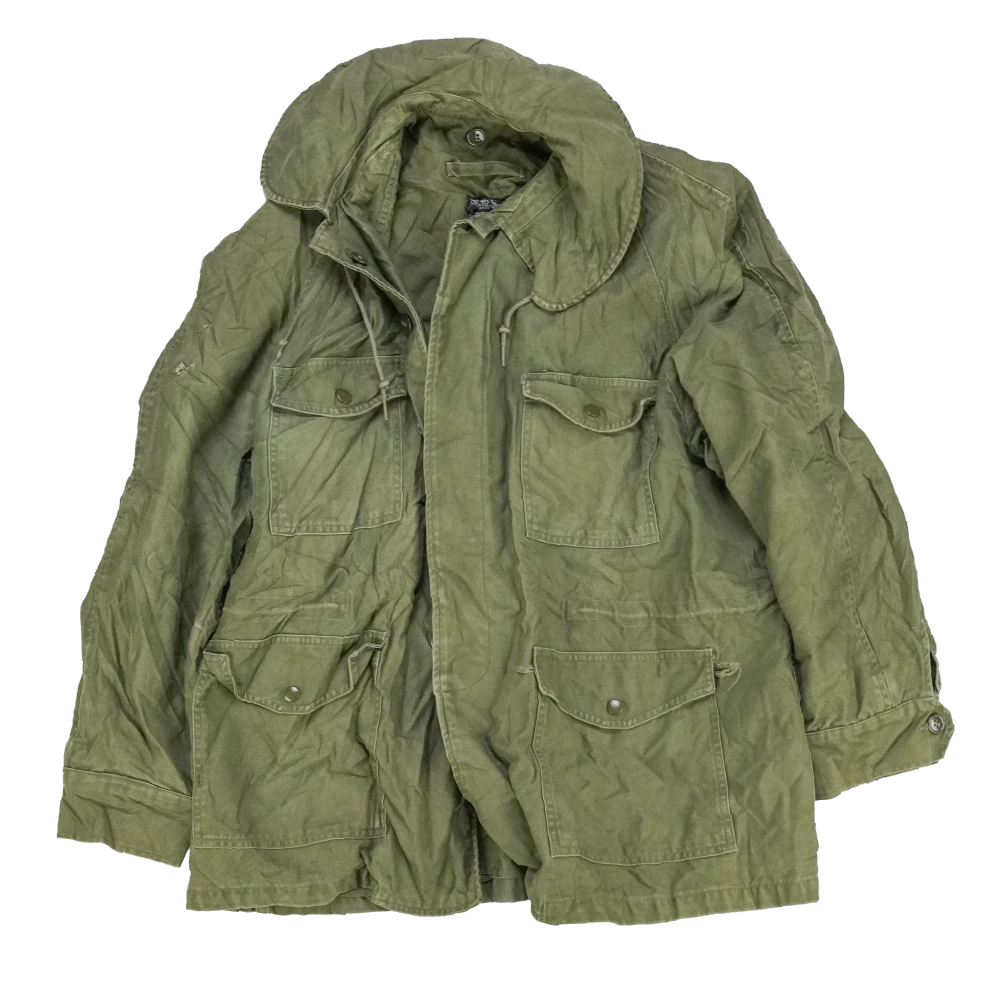 This US Air Force OG-107 field jacket is a surplus outer layer in a classic field jacket format. It has a regular-length cut and a structured military jacket style.