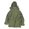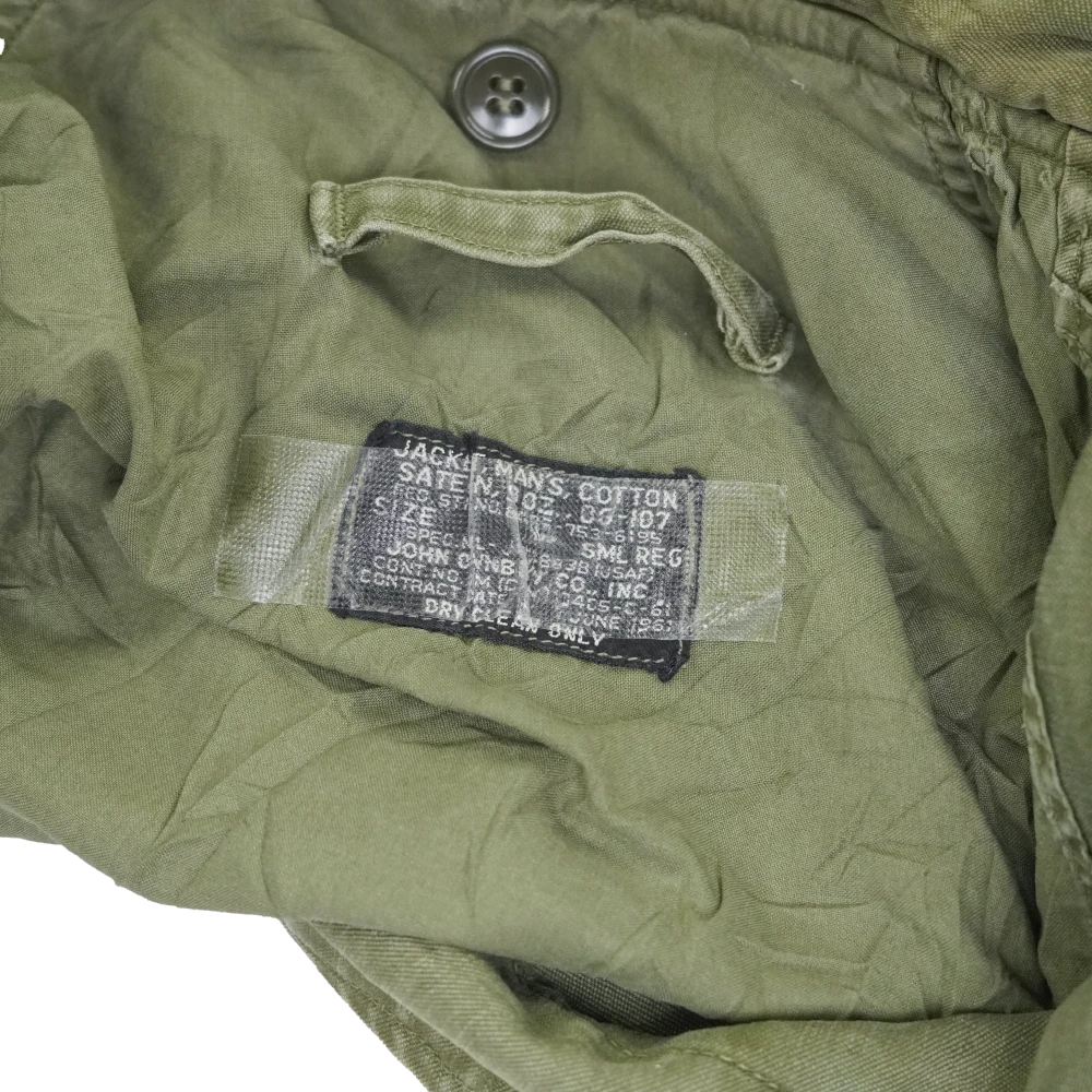 US Air Force sateen wind resistant field jacket in a small regular size. This is a field jacket style with a full front closure, button-adjustable cuffs, and multiple front pockets.