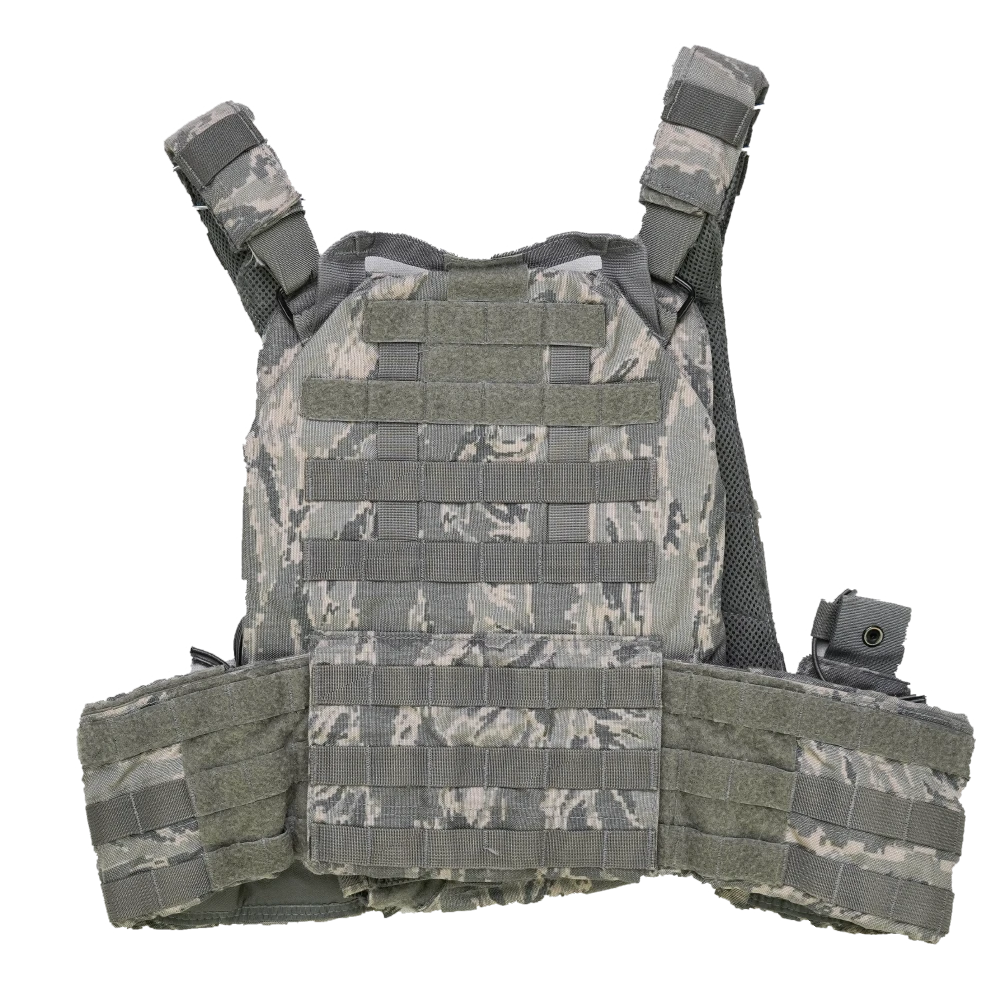 US Air Force T3 Gear Geronimo plate carrier in ABU camouflage. This is a surplus carrier in XLarge sizing with a straightforward plate carrier construction.