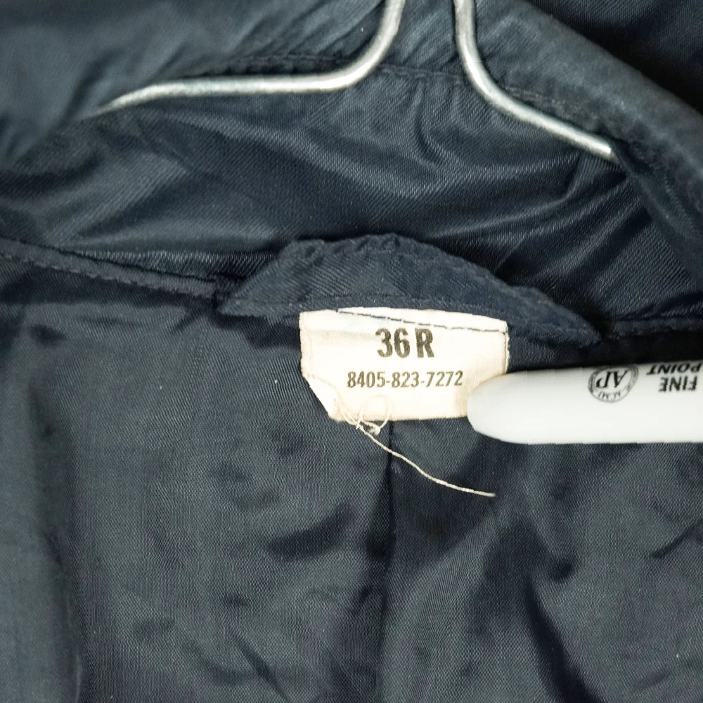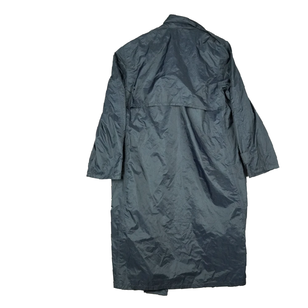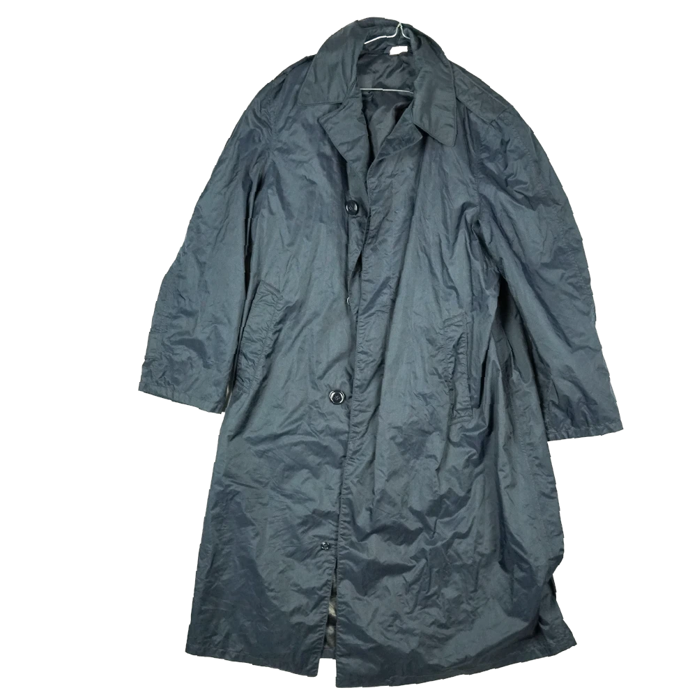 A US Air Force raincoat from the Vietnam era, made as a simple outer garment for wet weather conditions. It is a long-length coat with a clean, straightforward design typical of military rainwear from this period.